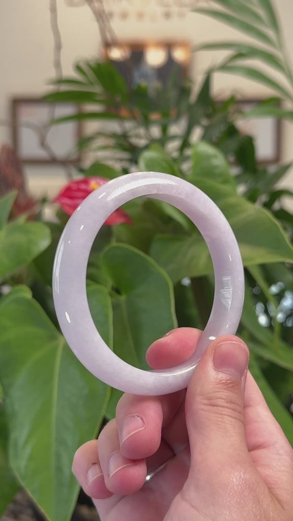 * DETAILS--- This beautiful luxury bangle is made from premium Burmese Jadeite jade, featuring a smooth ice texture and a lovely light lavender color. Truly a stunning bangle. Its classic half-round design highlights its natural beauty and ensures a comfortable fit. A timeless piece, perfect as a thoughtful gift for yourself or someone truly special.