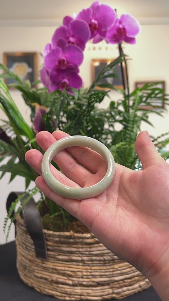 Designed in a half-round, comfort-fit style, the bangle is flat on the inside for a comfortable feel, perfect for everyday wear. Known for its durability, jadeite is also cherished as a symbol of good luck, protection, and harmony. Whether as a gift for yourself or a loved one, this jade bangle is a meaningful treasure that combines natural beauty, lasting craftsmanship, and exceptional value to cherish for years to come.