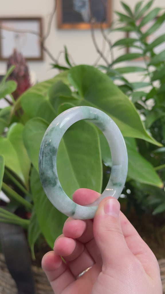 * DETAILS--- This beautiful bangle is made from premium Burmese Jadeite jade, featuring a smooth texture and a deep blue-green colors. Its classic half-round design highlights its natural beauty and ensures a comfortable fit. A timeless piece, perfect as a thoughtful gift for yourself or someone truly special.