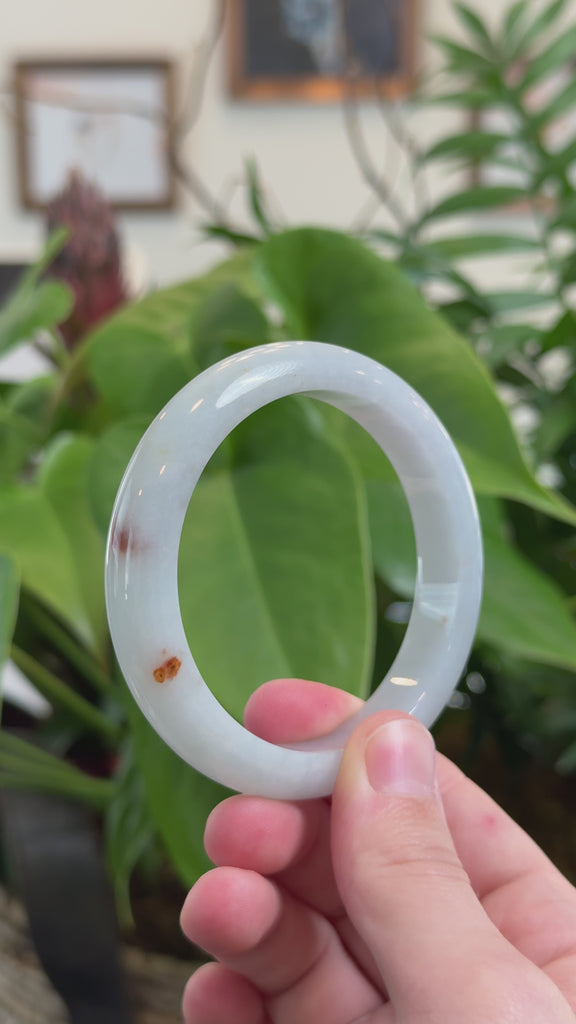 * DETAILS--This bangle is made from genuine Burmese Jadeite jade. It has a very smooth & translucent texture with a light green and yellow color spots. Looks so unique, The classic half-round design offers comfort and style. Jadeite jade is one of the toughest gemstones, and it's believed to bring good luck. This bangle makes a special gift for you or a loved one.
