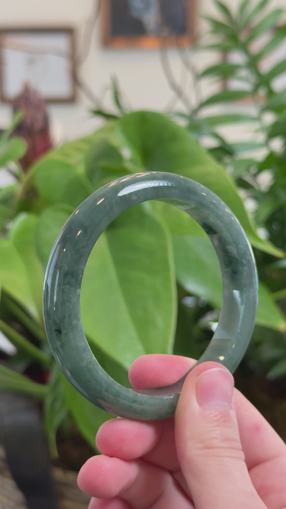 * DETAILS--- This beautiful bangle is made from premium Burmese Jadeite jade, featuring a smooth texture and a deeper oil-green color. Its classic half-round design highlights its natural beauty and ensures a comfortable fit, It's a bigger size.  A timeless piece, perfect as a thoughtful gift for yourself or someone truly special.