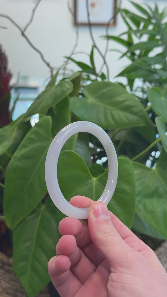 * DETAILS--- This elegant jade bangle is crafted from premium Burmese Jadeite jade, showcasing a smooth texture and a delicate light lavender blue hue. Its classic round design enhances its natural beauty, just has little natural lines. A timeless piece, it makes a meaningful gift for yourself or someone special.