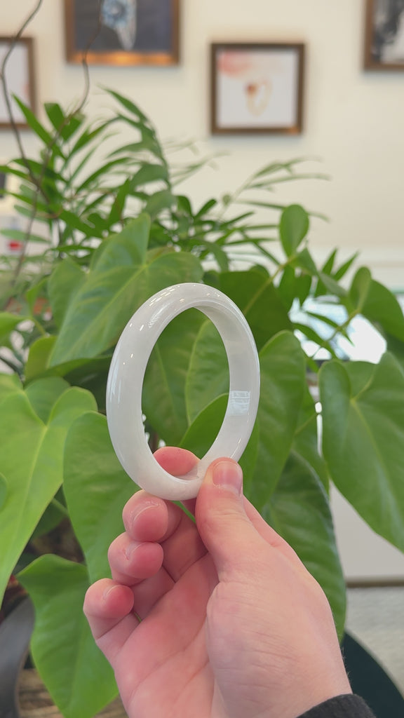 * DETAILS--- This beautiful bangle is made from premium Burmese Jadeite jade, featuring a smooth texture and a lovely light lavender color. Its classic half-round design highlights its natural beauty and ensures a comfortable fit. Just has some natural clouds, it's a bigger size, very affordable. A timeless piece, perfect as a thoughtful gift for yourself or someone truly special.