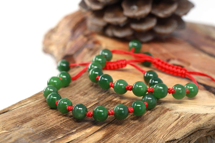 Baikalla Natural Nephrite Jade Bead Bracelet With Red String For Kids, Mom, Him.