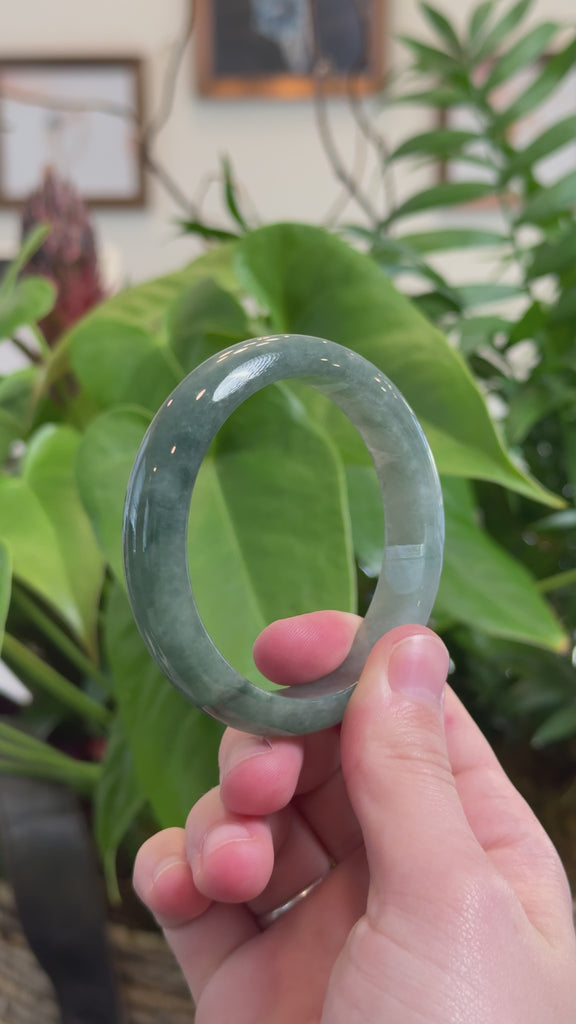* DETAILS--- This beautiful bangle is made from premium Burmese Jadeite jade, featuring a smooth texture and a oil-green color. Its classic half-round design highlights its natural beauty and ensures a comfortable fit, A timeless piece, perfect as a thoughtful gift for yourself or someone truly special.