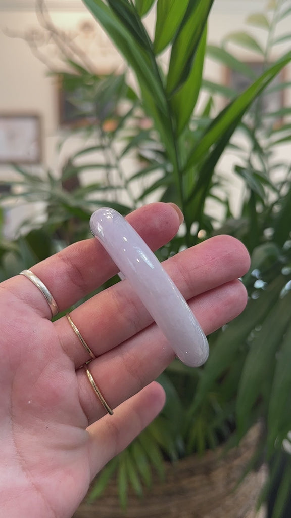 * DETAILS--- This beautiful bangle is made from natural Burmese Jadeite jade, featuring very smooth texture, with beautiful lavender colors through out. It's a half round, comfort-fit bangle, which is flat on the inside of the bangle and comfortable for everyday wear. This bangle has very few visible texture, overall very smooth and no natural lines. This is really nice color to come by for Burmese jadeite jade. A timeless piece, perfect as a thoughtful gift for yourself or someone truly special.
