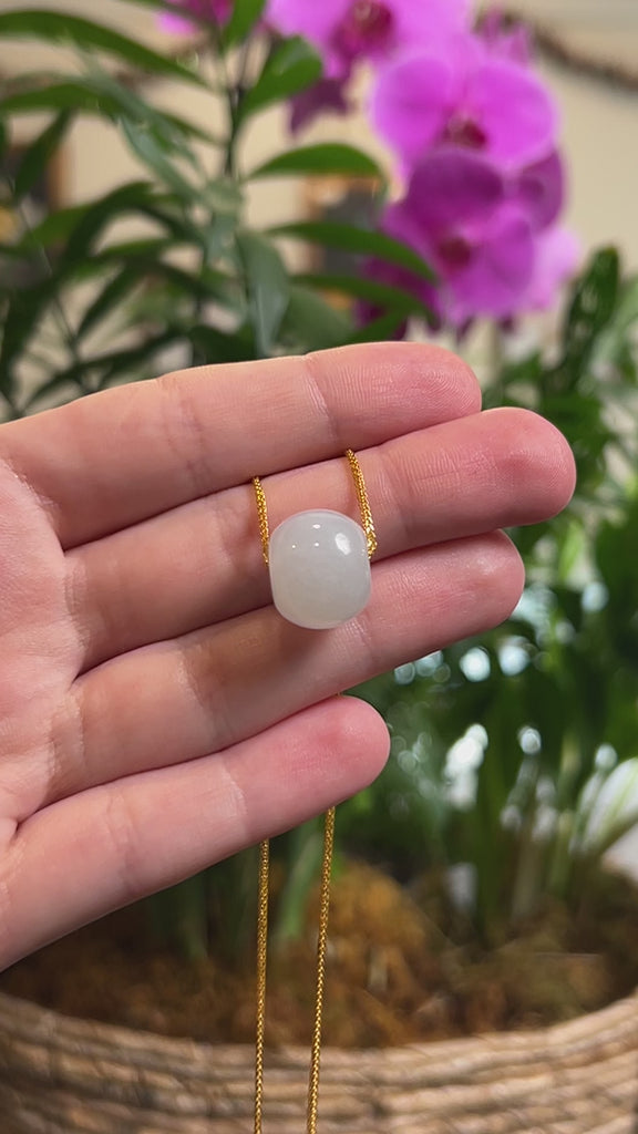 * Design Concept--- The Ping An Kou (Good Luck Button) is a Chinese symbol of peace, protection and well-being, believed to ward off negative energy and bring good fortune. This pendant is made with natural Burmese jadeite jade that features a soft white color throughout. Known for its durability, jadeite is also believed to bring good luck. Gifting one of these is like wishing the best of luck to your family or loved ones.