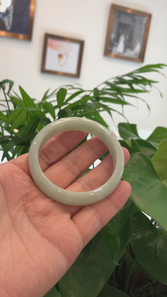 * DETAILS--This bangle is made with fine genuine Burmese Jadeite jade. The jade texture is fine and smooth with some yellowish green color. It's a very unique bangle. The Classic half-round comfort style bracelet. Jadeite jade is the toughest gemstone on the planet. People believe the real jade is a lucky gemstone. It's a special gift for you and your love.