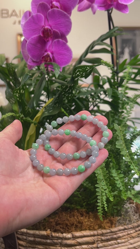 Baikalla Grey-Lavender & Apple-Green Genuine Jadeite Jade Round Bead Bracelet (7.3mm)