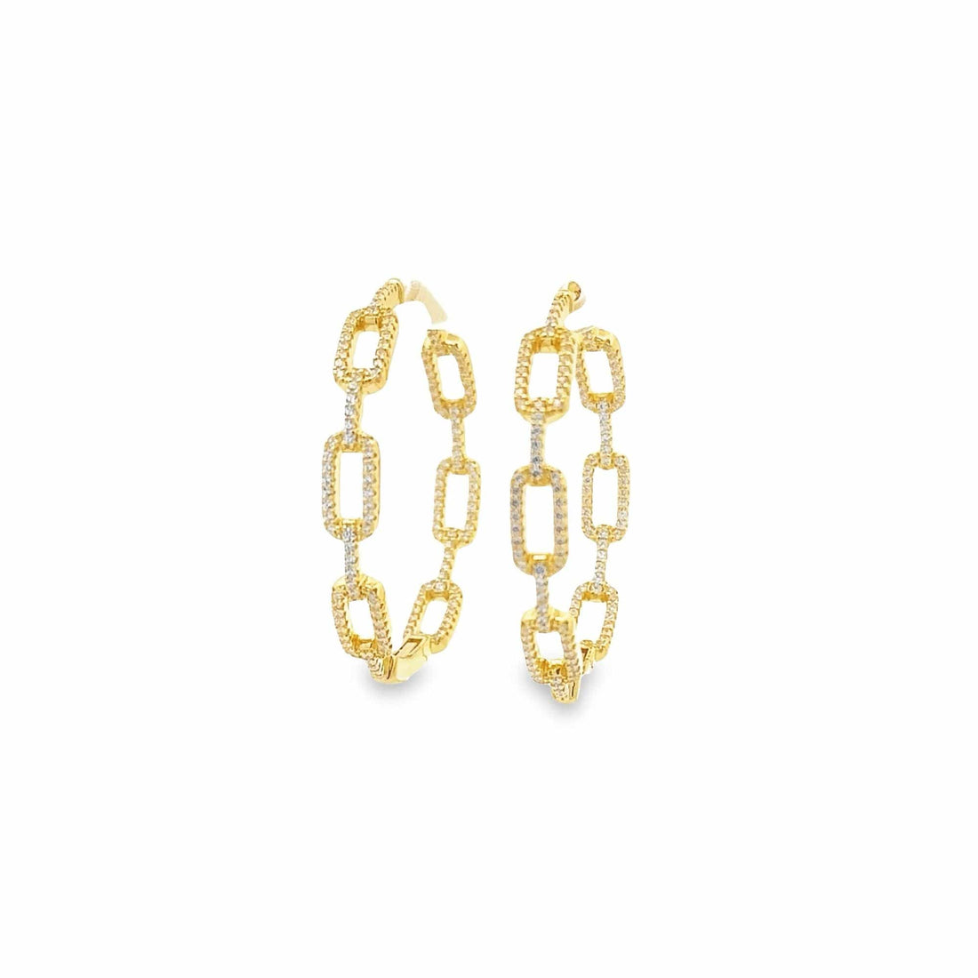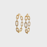 Design concept--- These simple hoop earrings are to last. Sterling silver gold plated chain design with CZ stones are a key accessory for any women. Wearable day or night to elevate any look. Every detail on these hoops looks lovely. It's a very perfect gift for a woman, for her.