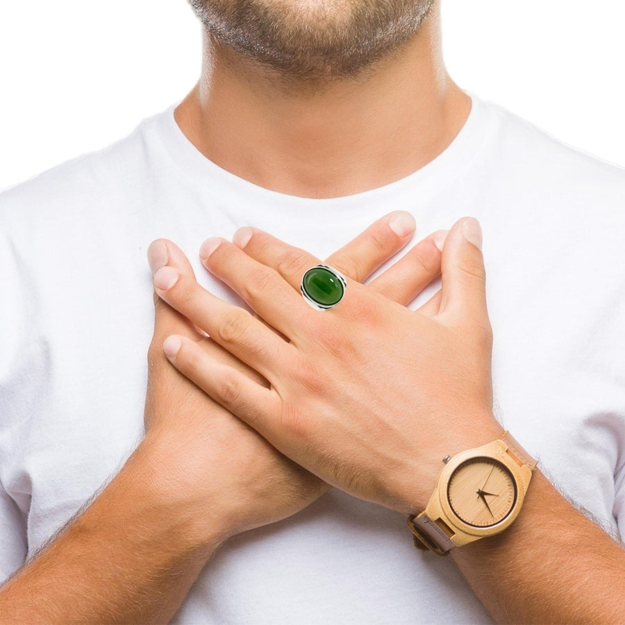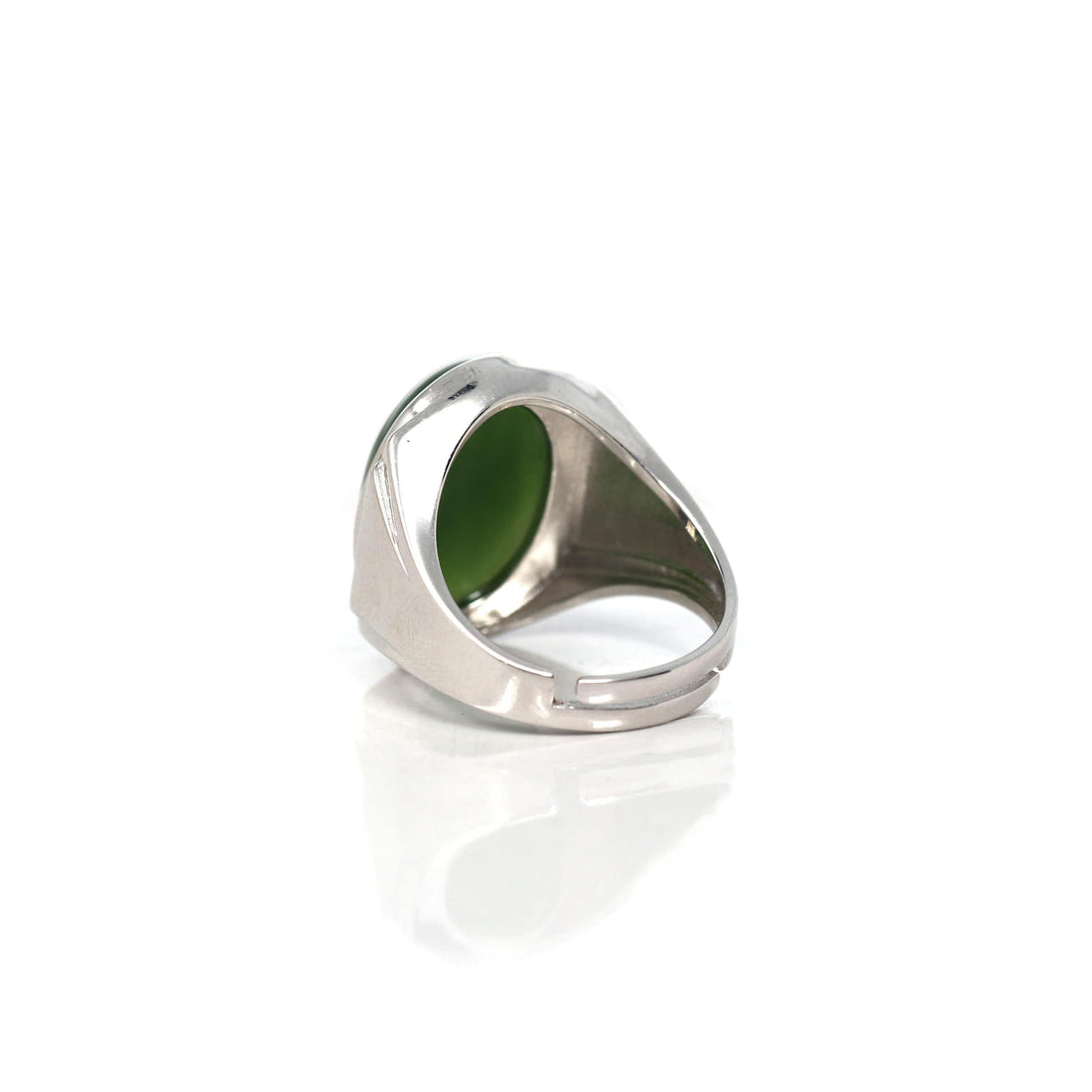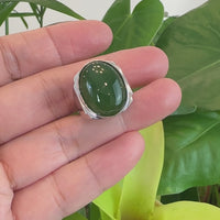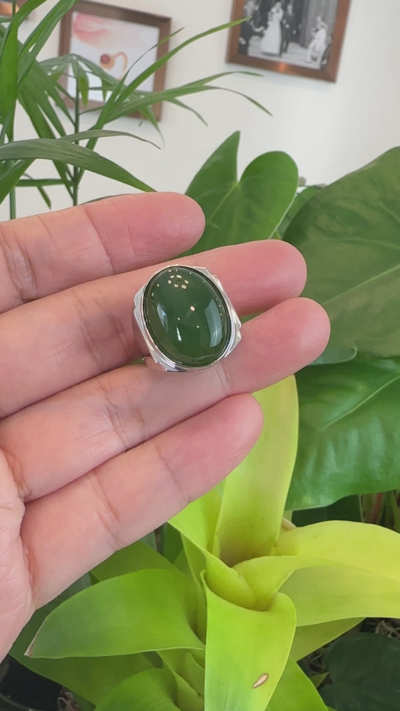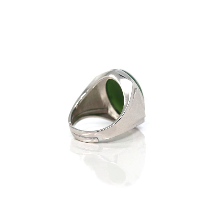 Design concept --- Elevate your style with our Natural Green Nephrite Jade Men's Signet Ring in sterling silver. Crafted to perfection and made to last, it features a genuine green nephrite jade stone, symbolizing good luck and success. The silver band adds a modern touch with an simple polished finish, making it a versatile and distinctive accessory for any occasion. Embrace the beauty of nature with this timeless piece. Also the ring size is adjustable.