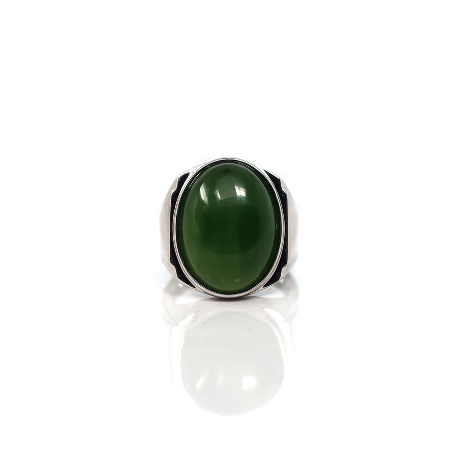 Baikalla Sterling Silver Oval Green Nephrite Jade Men's Ring
