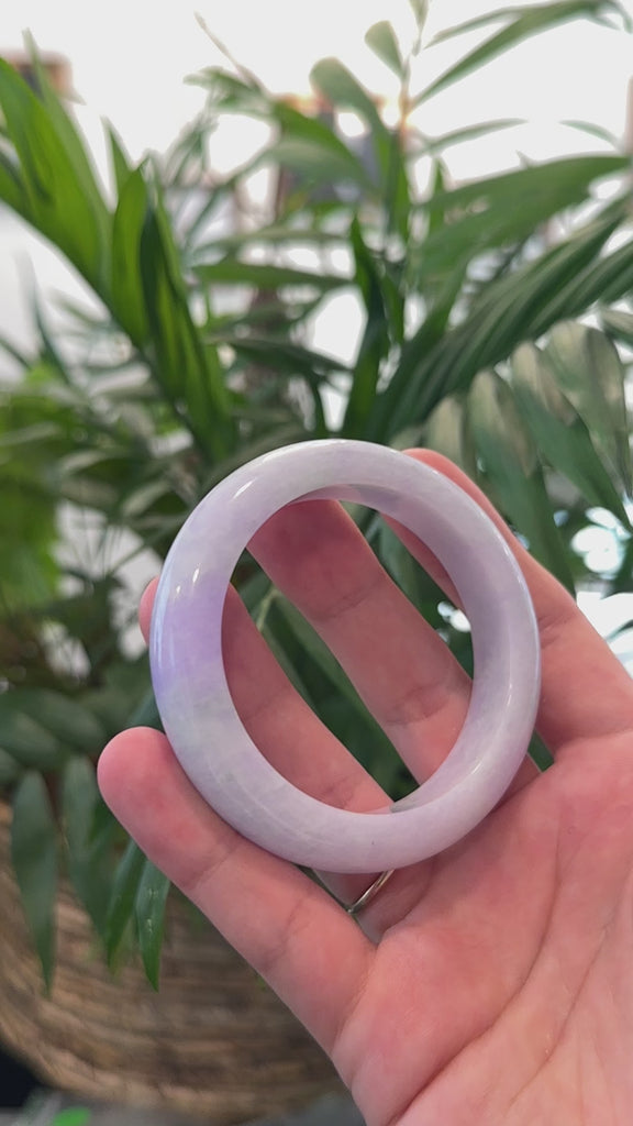 * DETAILS--- This bangle is crafted from genuine Burmese Jadeite jade. It features a semi smooth, semi translucent texture with very intense lavender colors that looks very beautiful and unique. Known as the "Vixen" Purple or 妖紫. For its very attractive purple color. It's a half round, comfort-fit bangle, which is flat on the inside of the bangle and comfortable for everyday wear. The bangle does have some cloudy spots and natural lines. Known for its durability, jadeite is also believed to bring good luck. This bangle makes a thoughtful and meaningful gift for yourself or someone special.