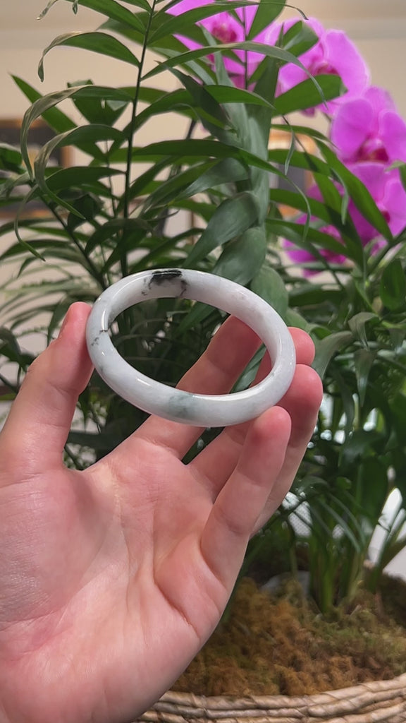 It's a half-round, comfort fit oval bangle that is flat on the inside, making it comfortable for everyday wear. Known for its durability, jadeite is also believed to bring good luck. Whether as a gift for yourself or a loved one, this jade bangle is a meaningful treasure that combines natural beauty, lasting craftsmanship, and exceptional value to cherish for years to come.