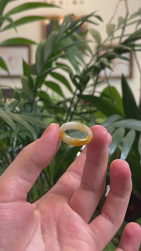Baikalla Icy Yellow-Orange & White Burmese Jadeite Jade Traditional Ring #5.5