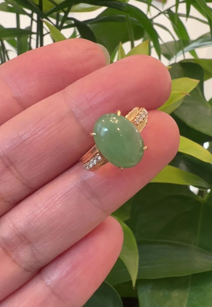 Baikalla 18k Rose Gold Natural Imperial Green Oval Jadeite Jade Engagement Ring With Diamonds