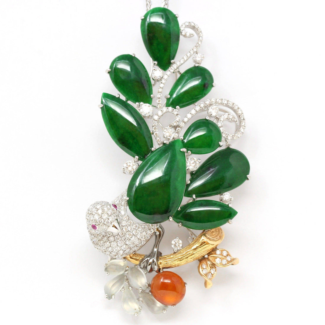 Baikalla Jewelry 18k Gold Jadeite Necklace "Bird on A Tree" Baikalla Jewelry Signature Neck-piece Brooch Necklace