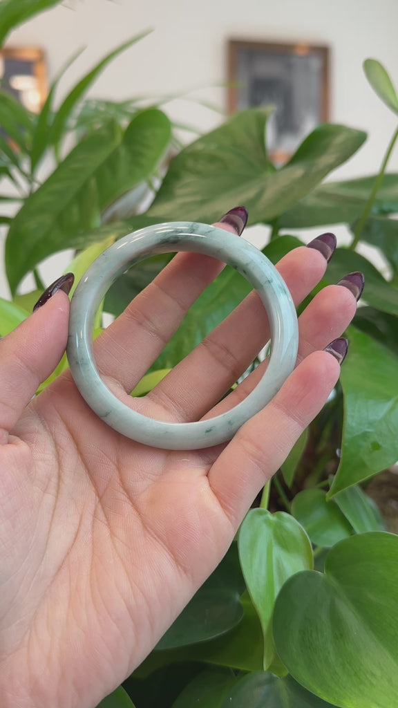 * DETAILS---  This bangle is made with genuine Burmese blue-green jadeite jade. The jade texture is smooth and translucent. The blue dark green color and transparency truly a mesmerizing combination. Just a little natural clouds line. The Classic half-round style bracelet. The whole bangle looks nice with deep blue color. It's a unique gift for yourself or your love.