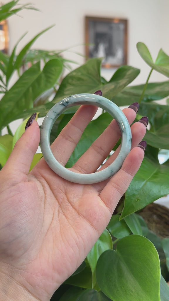* DETAILS--- This bangle is made with genuine Burmese blue-green jadeite jade. The jade texture is smooth and translucent. The blue dark green color and transparency truly a mesmerizing combination. Just a little natural clouds line. The Classic half-round style bracelet. The whole bangle looks nice with deep blue color. It's a unique gift for yourself or your love.