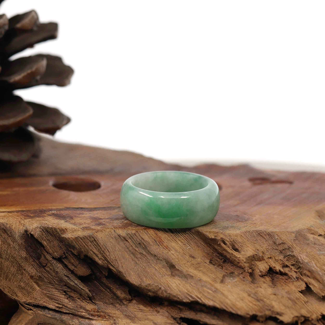 Burmese Green Jadeite Jade Men's Band Ring