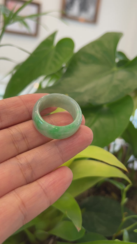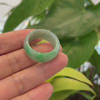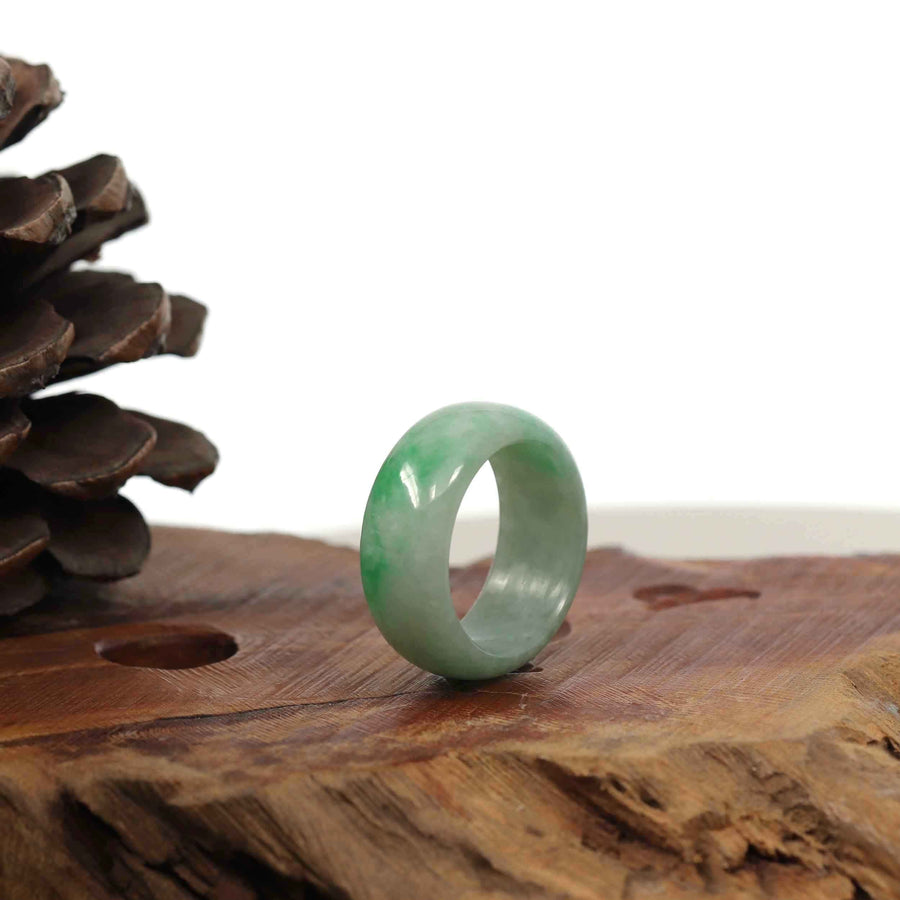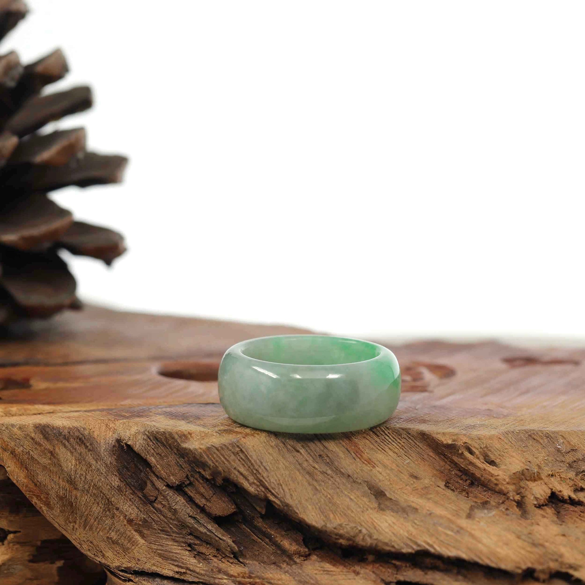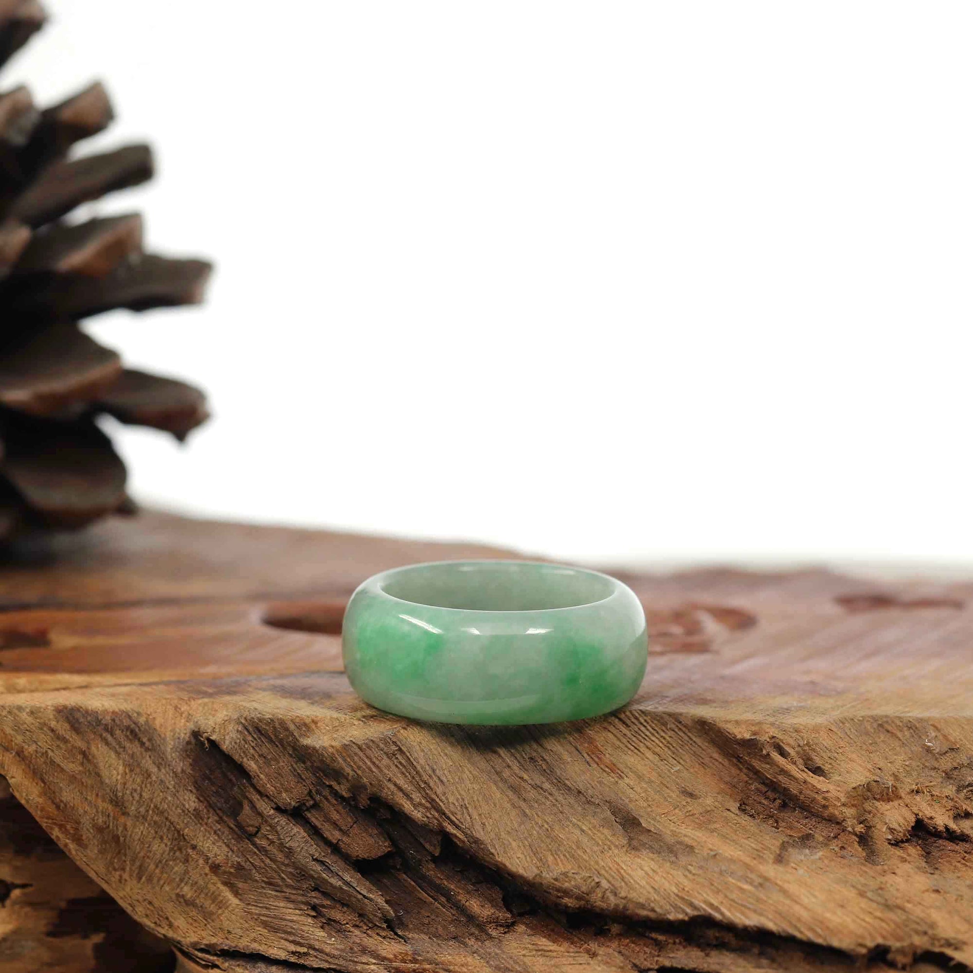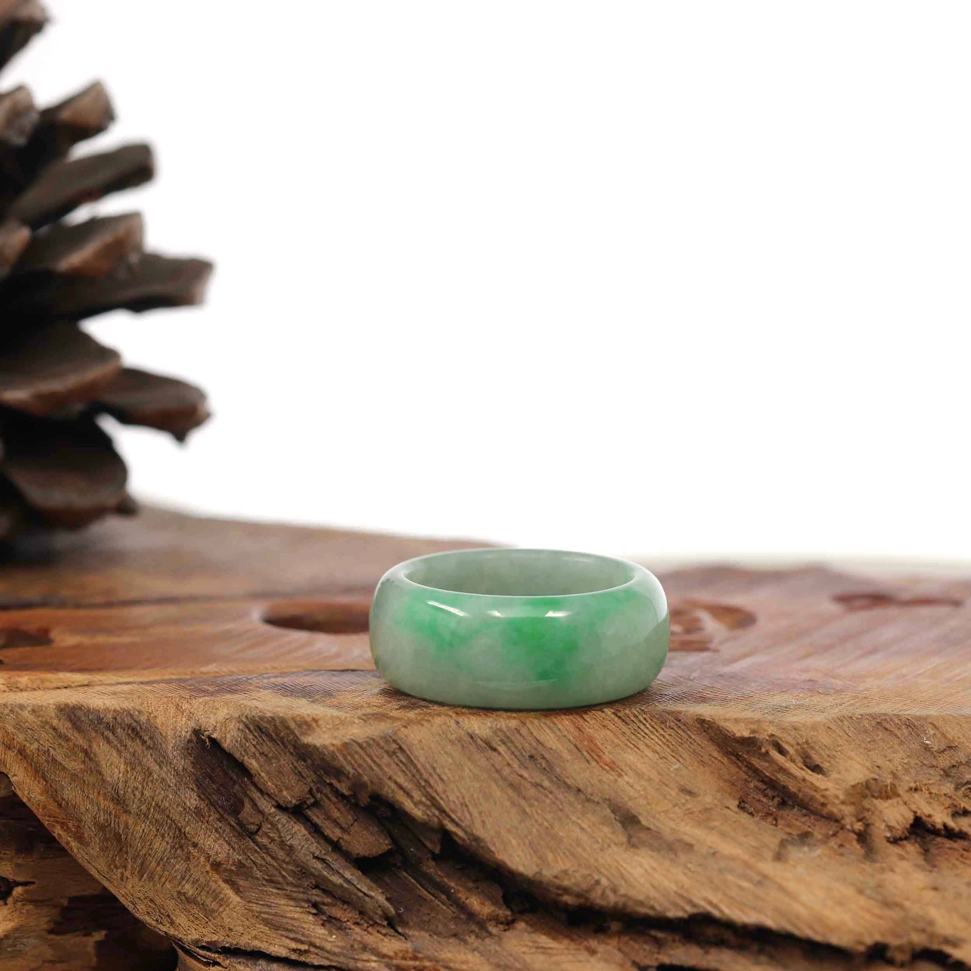 * DETAILS--- Genuine Burmese Jadeite Jade Solid men's band. This ring is made with very high-quality genuine Burmese green jadeite jade, The jade texture is smooth, clean, and semitransparent. The green color and translucent white texture, truly a mesmerizing combination. The Classic half-round style solid jade band. The ring is characterized by beautiful green patches. It looks completely beautiful and perfect with high-quality. It's a special gift for men.