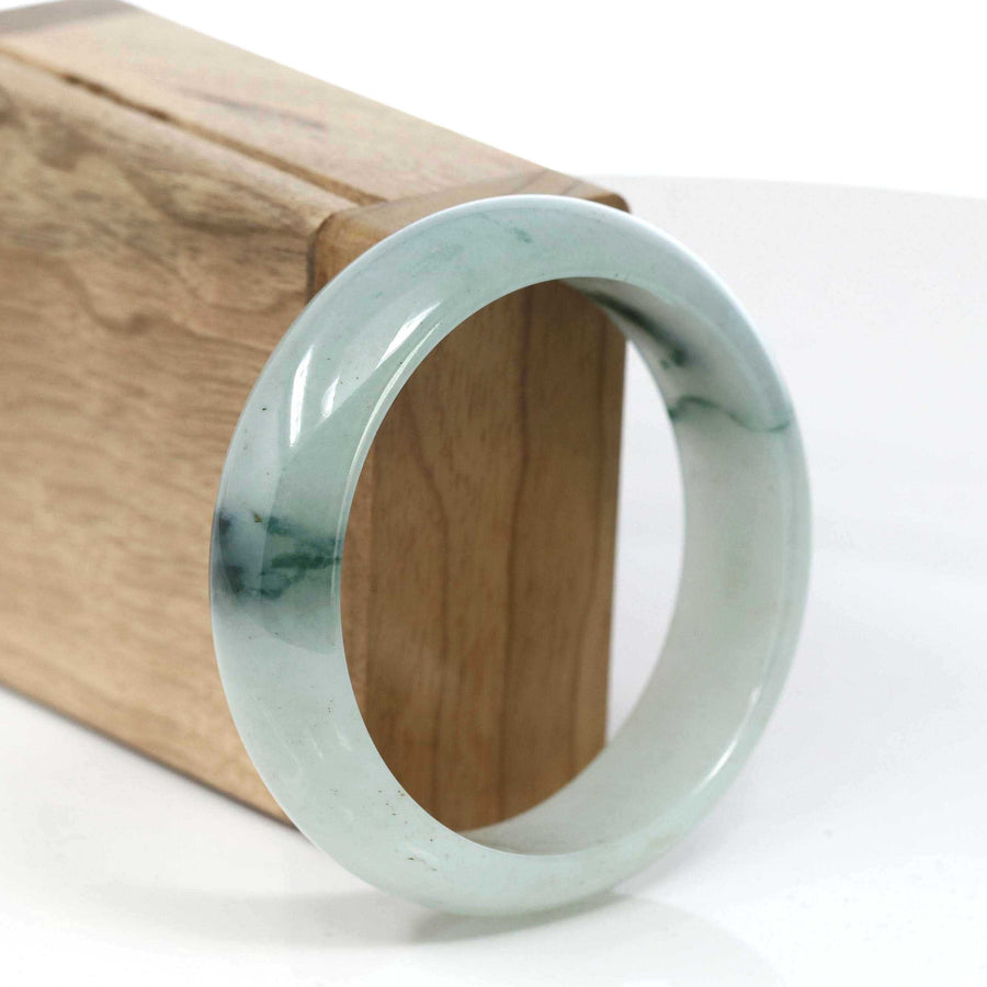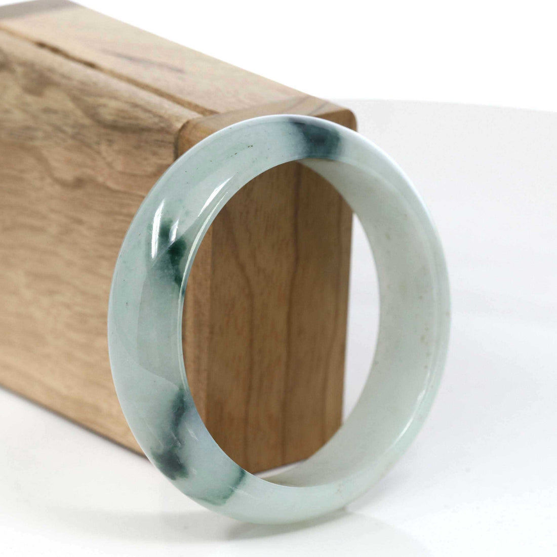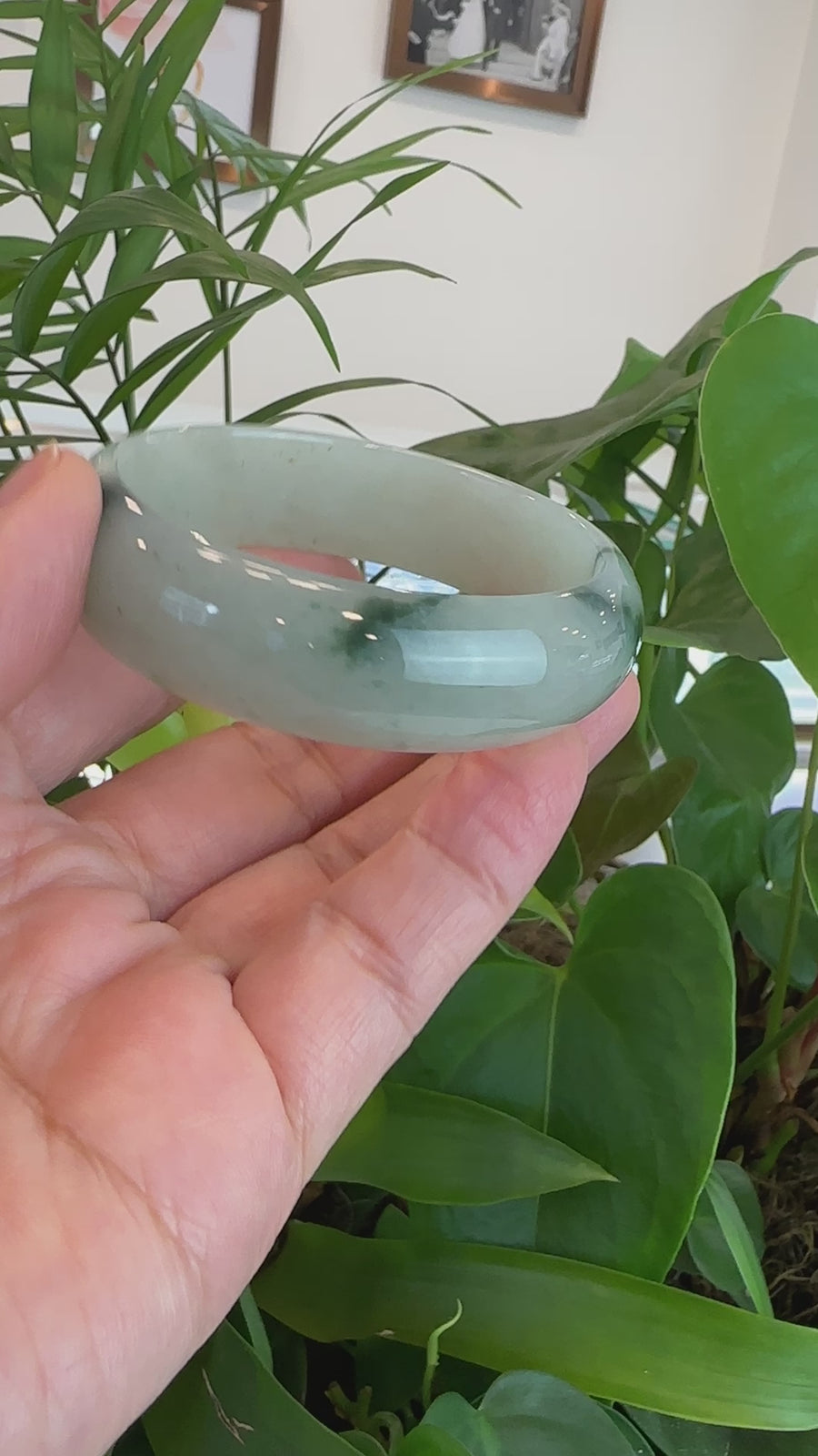 * DETAILS--- Genuine Burmese Ice Blue-green Jadeite Jade Bangle Bracelet. This bangle is made with very high-end genuine Burmese ice green jadeite jade. The jade texture is so transparent with blue-green-purple. The blue-green color and transparency ice texture, are truly a mesmerizing combination. It looks very clear to feel in the freshwater. The Classic half-round style bracelet. it looks very luxurious and perfect high-end gift for yourself or your love. It's a collectible item.