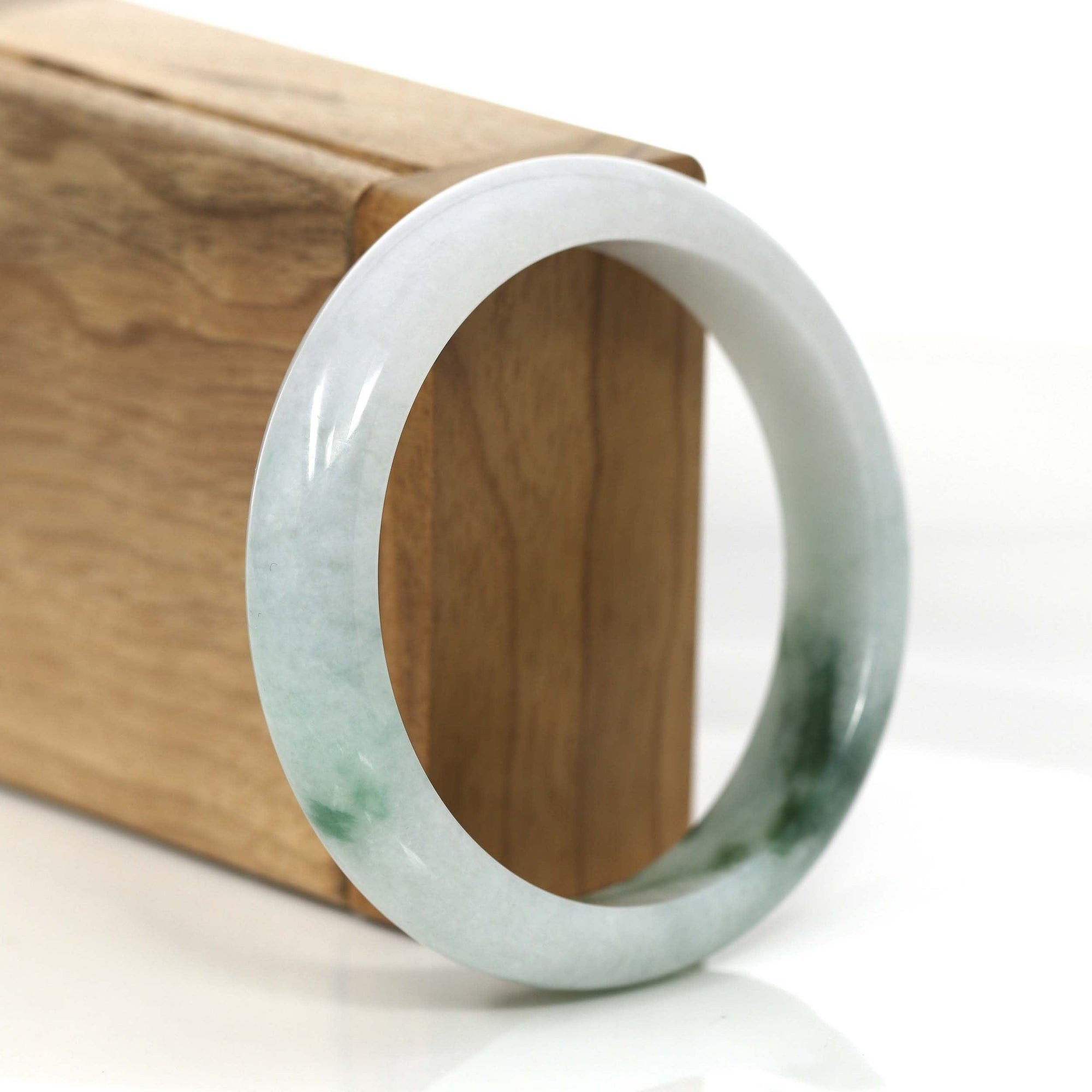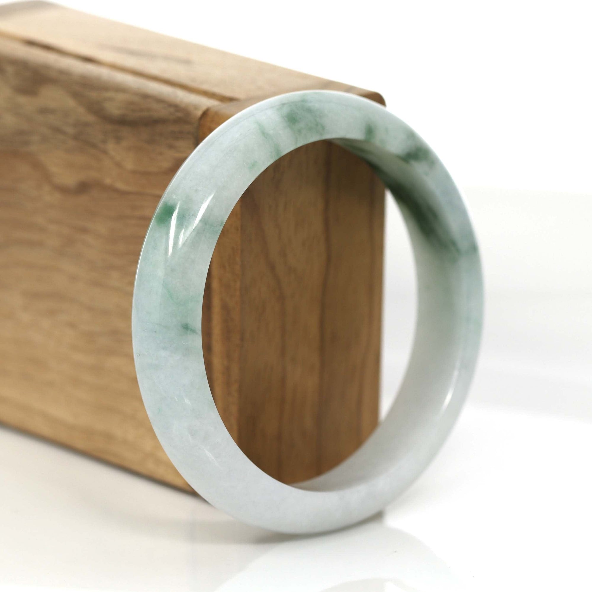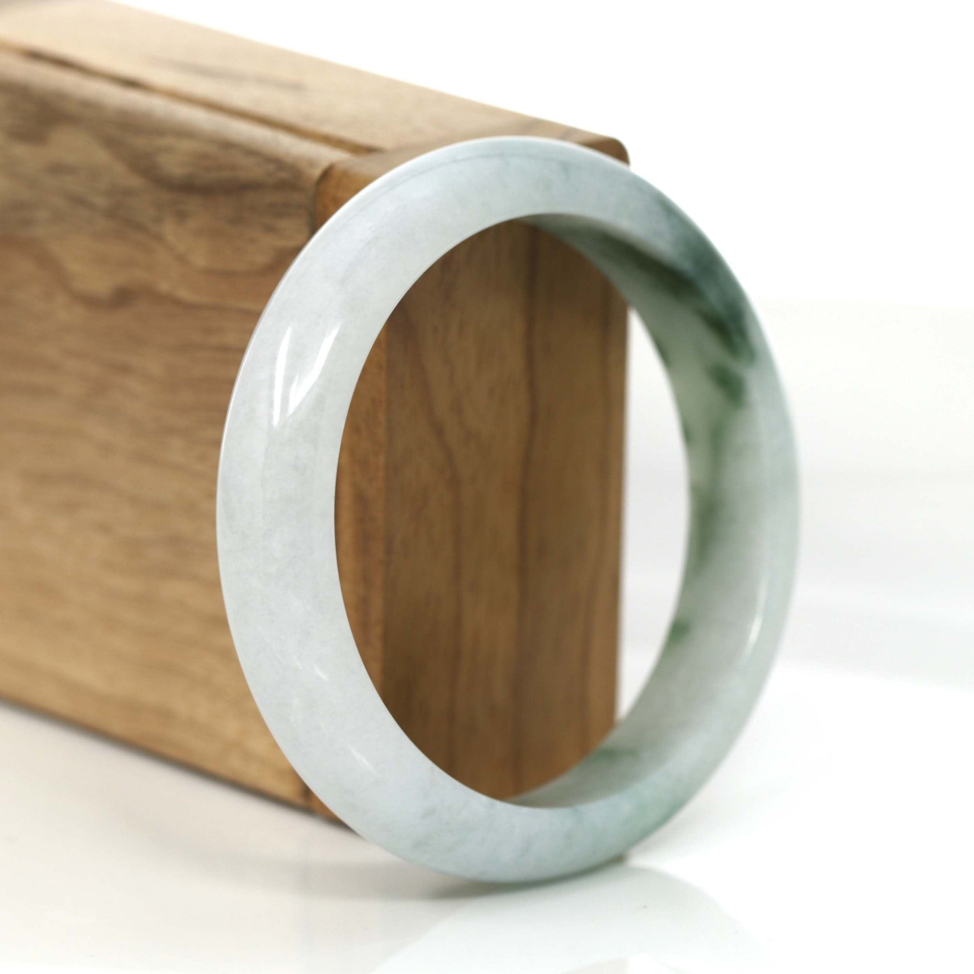 * DETAILS--- Genuine Burmese Ice Jadeite Jade Bangle Bracelet. The jade texture is fine with an even, beautiful blue-green, and little lavender throughout. The Classic half-round style bracelet is comfortable. It's a unique gift for yourself or your love.