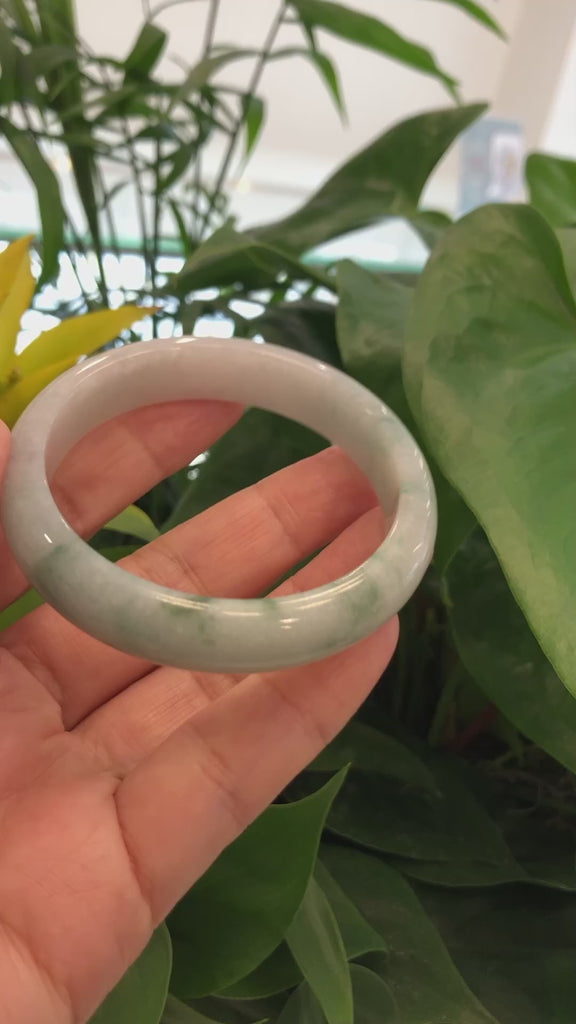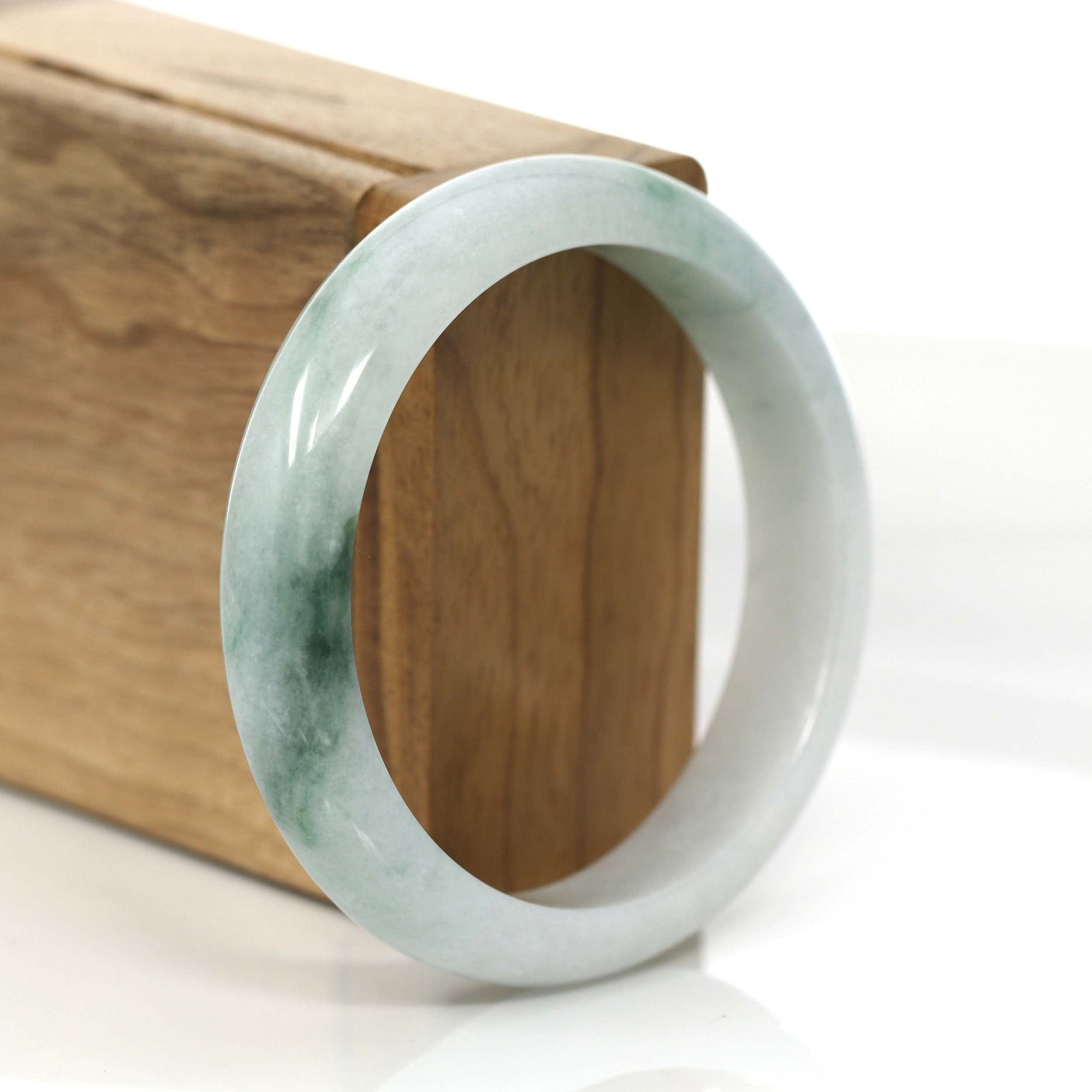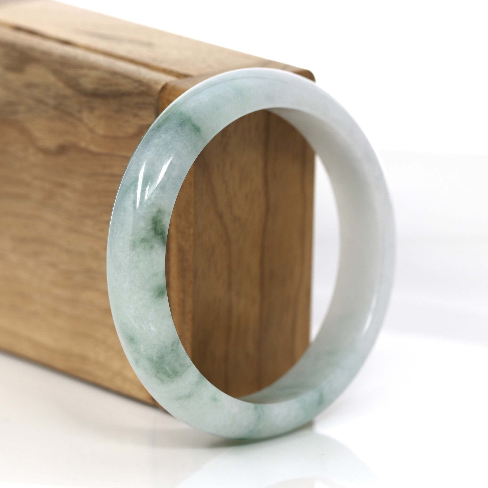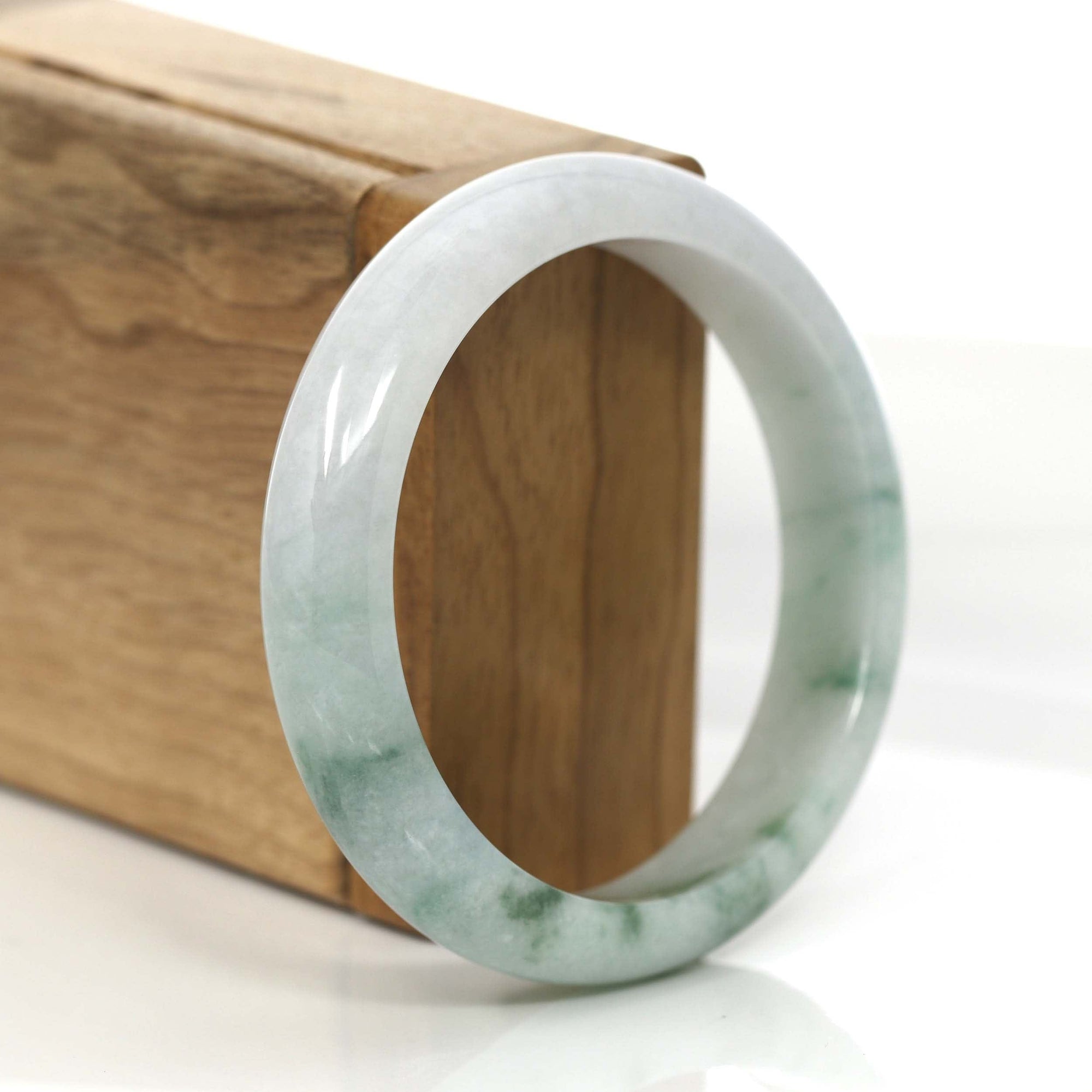 * DETAILS--- Genuine Burmese Ice Jadeite Jade Bangle Bracelet. The jade texture is fine with an even, beautiful blue-green, and little lavender throughout. The Classic half-round style bracelet is comfortable. It's a unique gift for yourself or your love.
