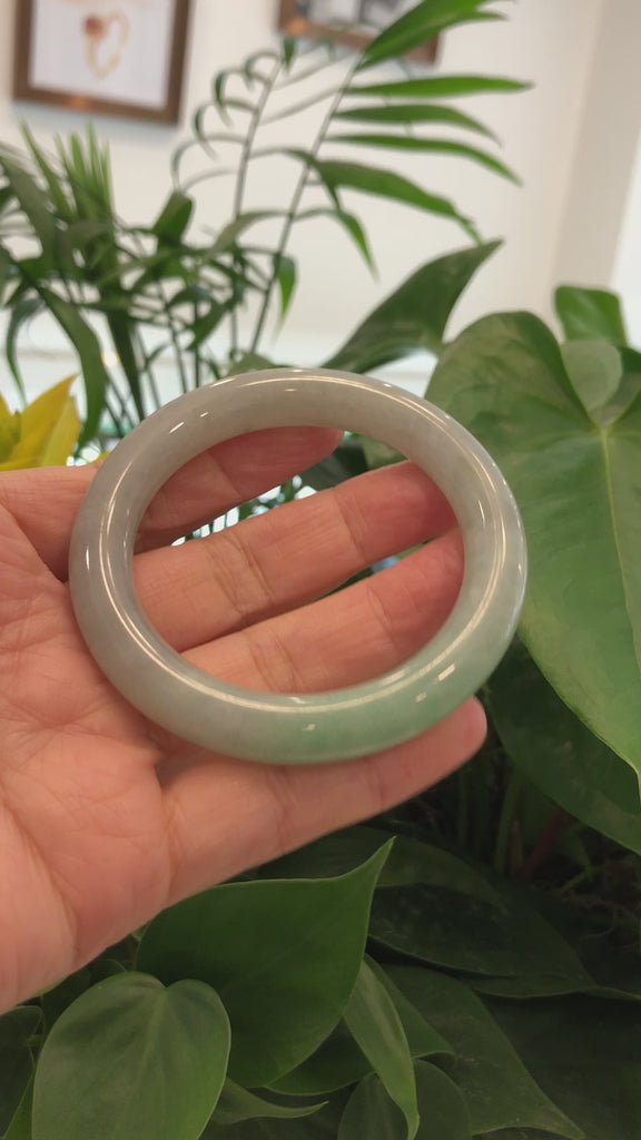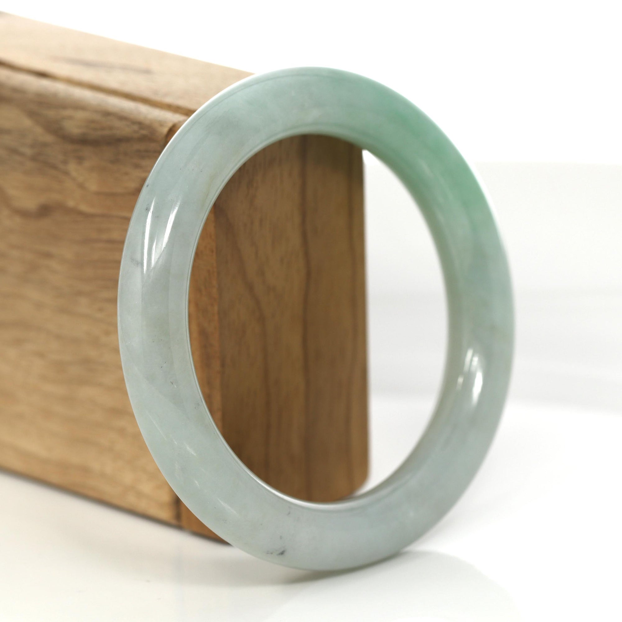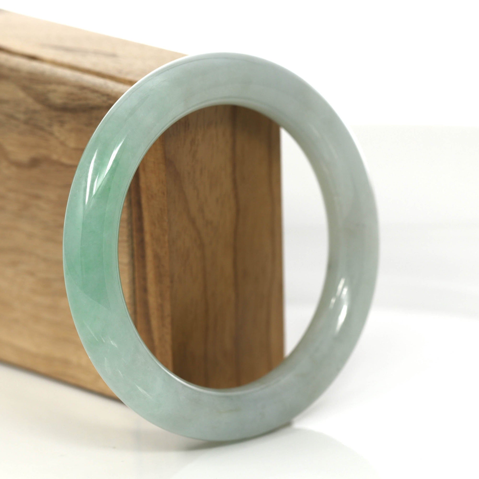 * DETAILS---This bangle is made with genuine Burmese old mine Jadeite jade, The jade texture is very smooth and translucent with green color inside. It's a very unique and round old style bangle. It's a special gift for yourself or your love.