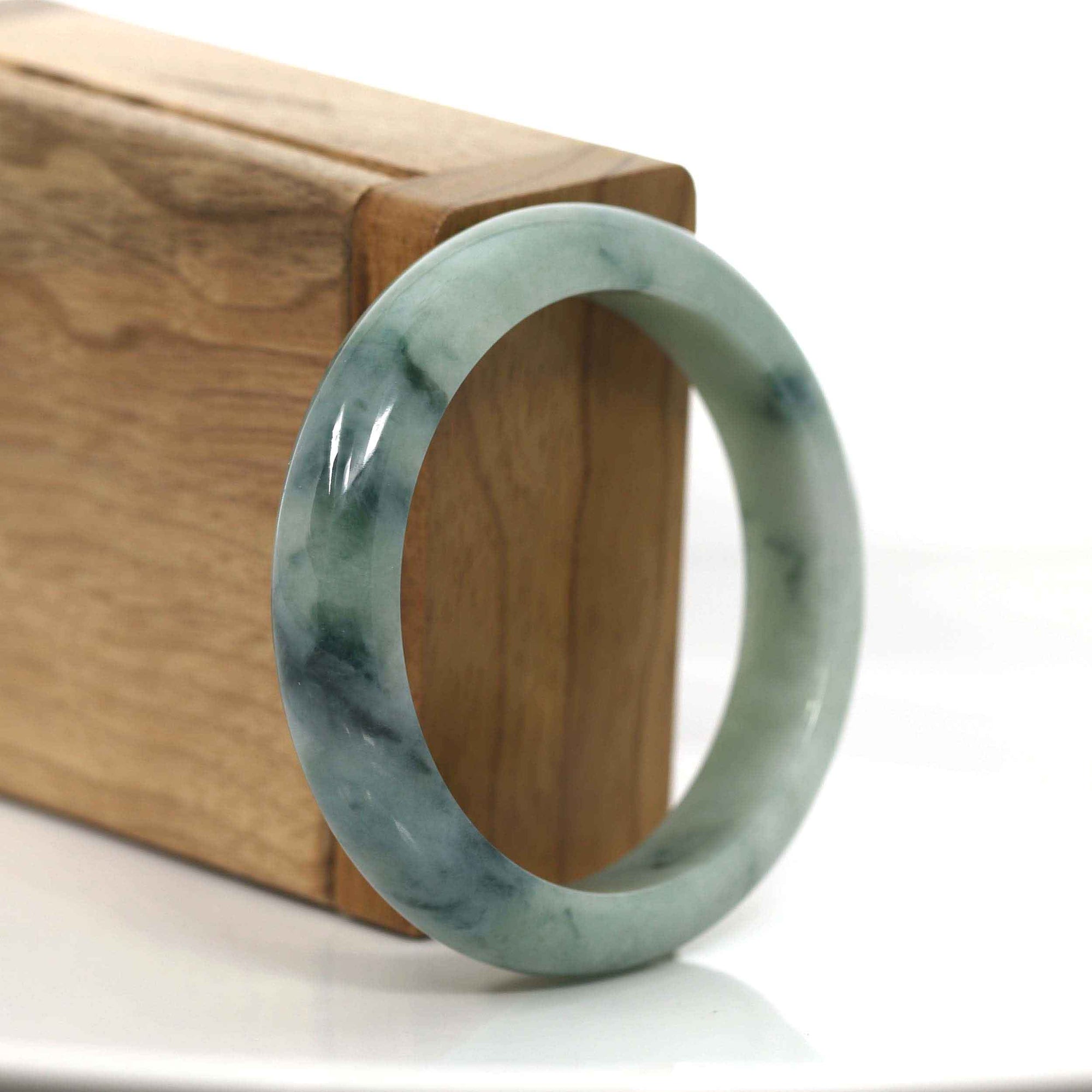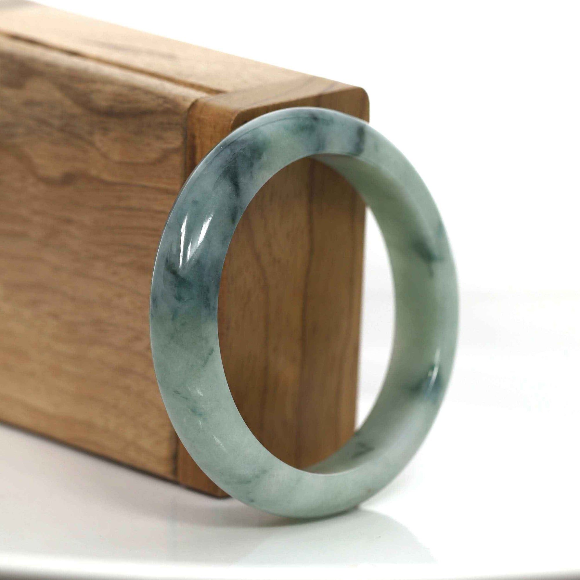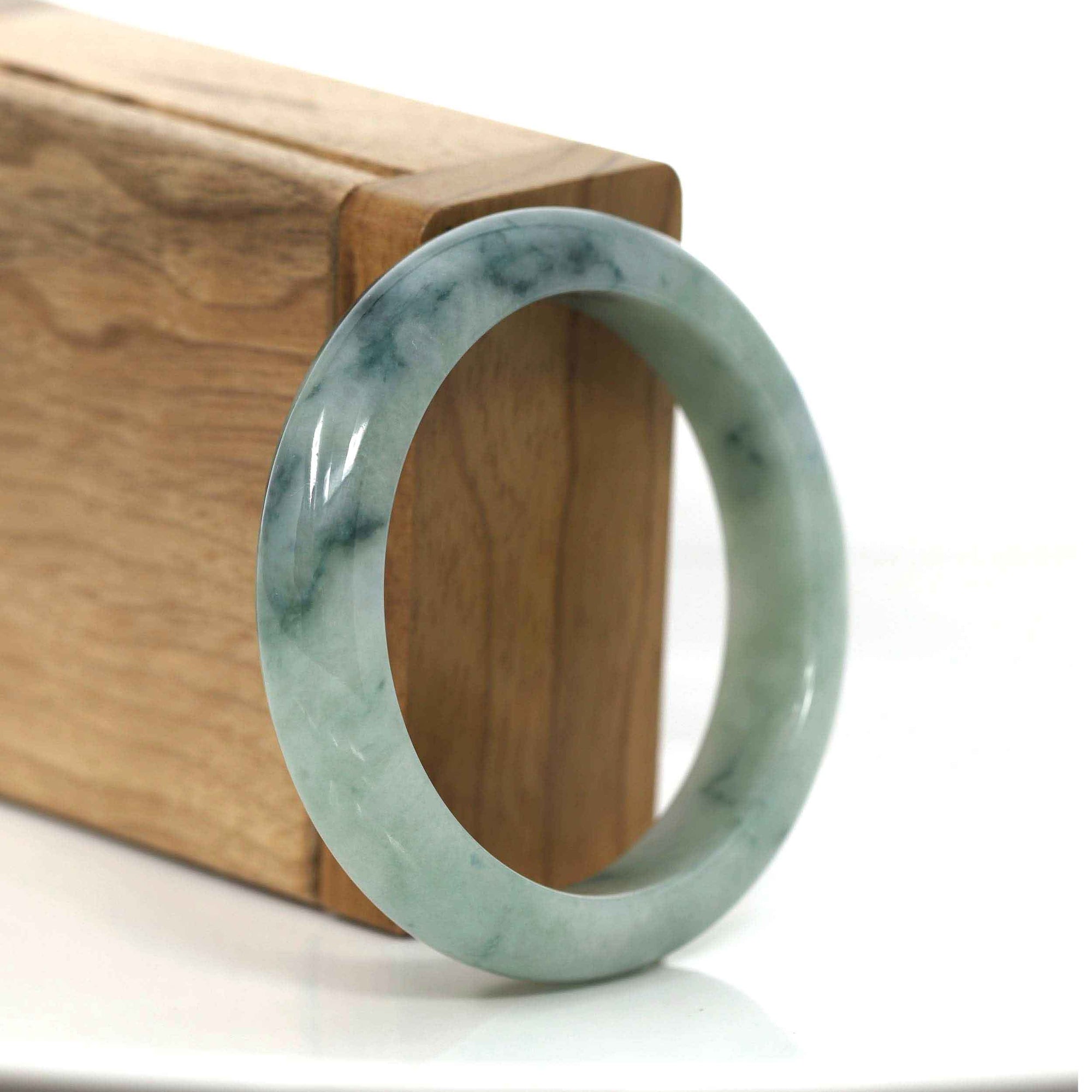 * DETAILS---Genuine Burmese Jadeite Jade Bangle Bracelet. This bangle is made with genuine Burmese Jadeite jade, The jade texture is very smooth and translucent with some blue green color inside. The blue green color looks very nice as landscape painting. It's a very unique bangle. You know the genuine jade bangle is always meaningful for someone. The Classic half-round style bracelet. It's a special gift for yourself or your love.