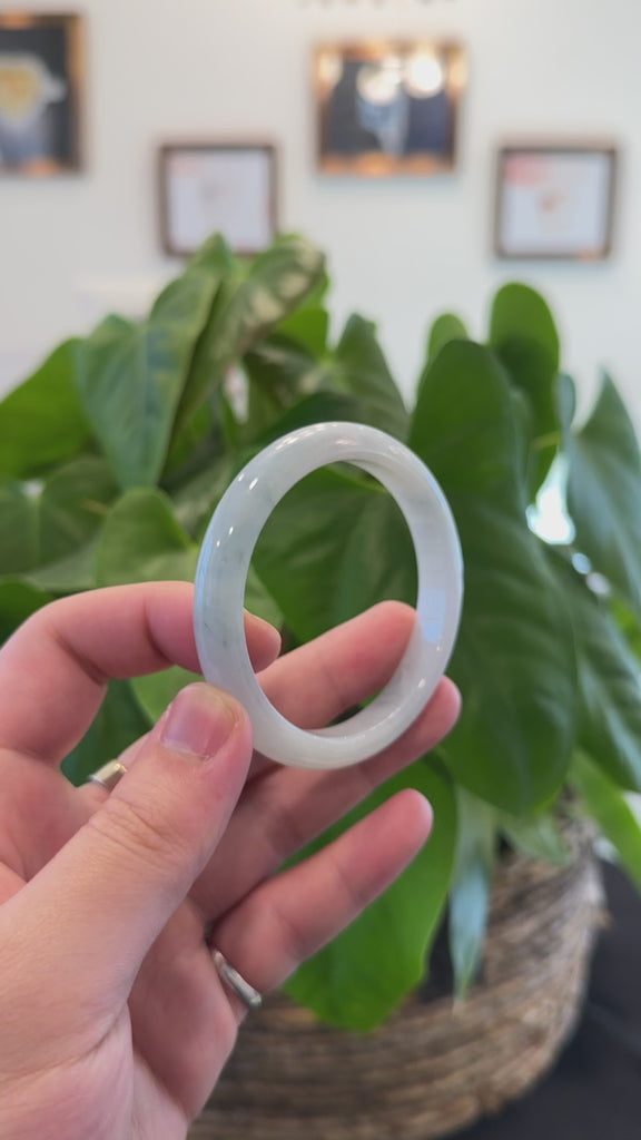* DETAILS---This exquisite bangle is crafted from premium Burmese jadeite in a Icy blue. With its smooth, translucent texture and captivating color, it radiates a timeless elegance and cultural heritage. The half round comfort design enhances the jade’s natural beauty with clarity and simplicity, making this bracelet a cherished addition to any jewelry collection. Known to symbolize protection and strength, jade bangles hold deep meaning, making this piece a thoughtful, one-of-a-kind gift for yourself or someone truly special.
