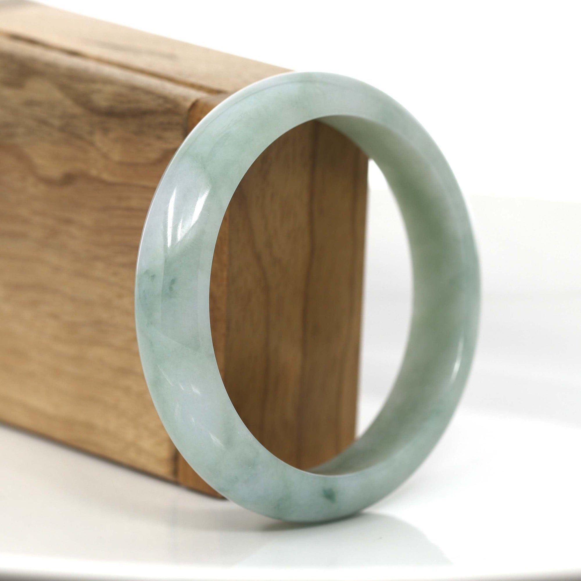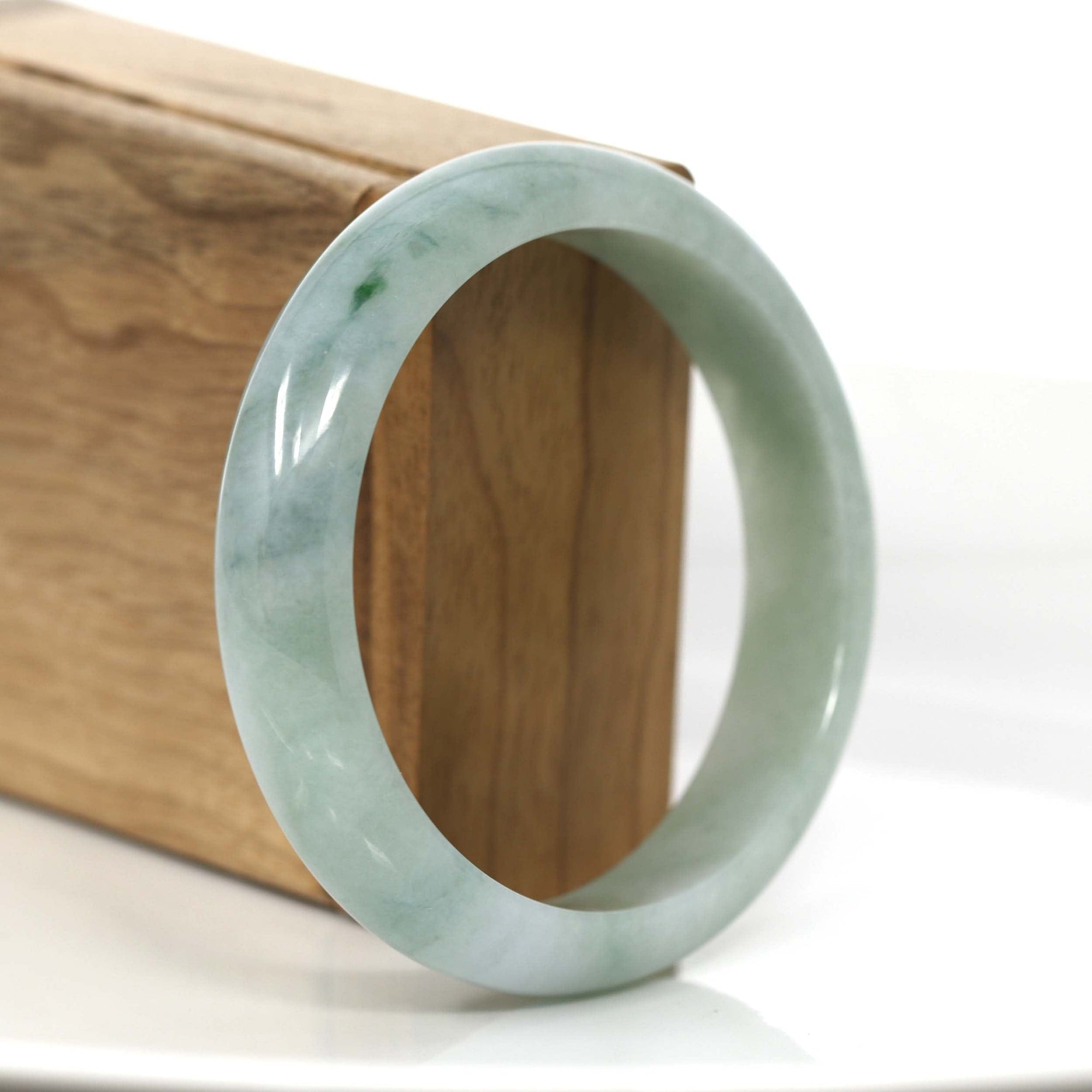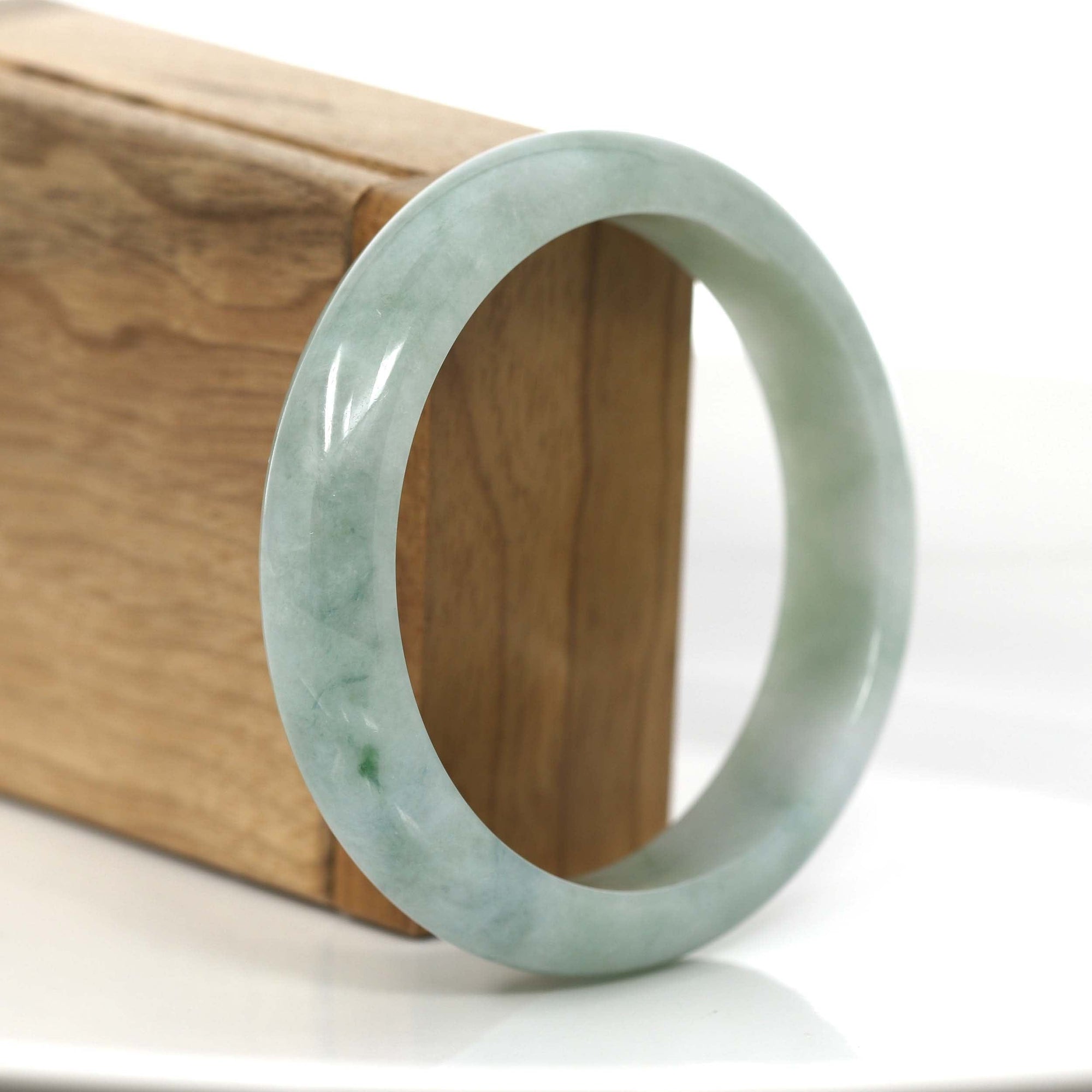 * DETAILS---This bangle is made with fine genuine Burmese Jadeite jade. The jade texture is fine and smooth with blue green color. It just has little clouds. The Classic half-round comfort style bracelet. Jadeite jade is the toughest gemstone on the planet. People believe the real jade is a lucky gemstone. It's a special gift for you and your love.