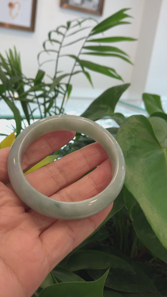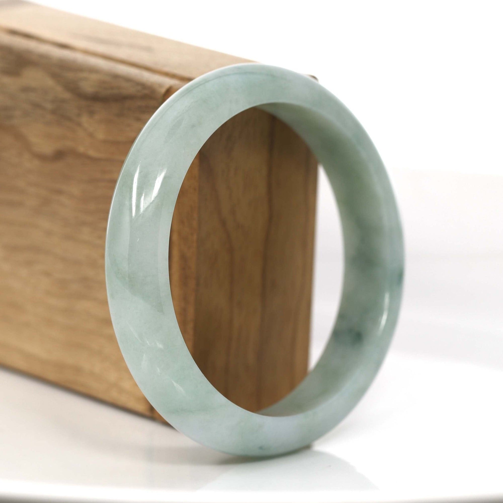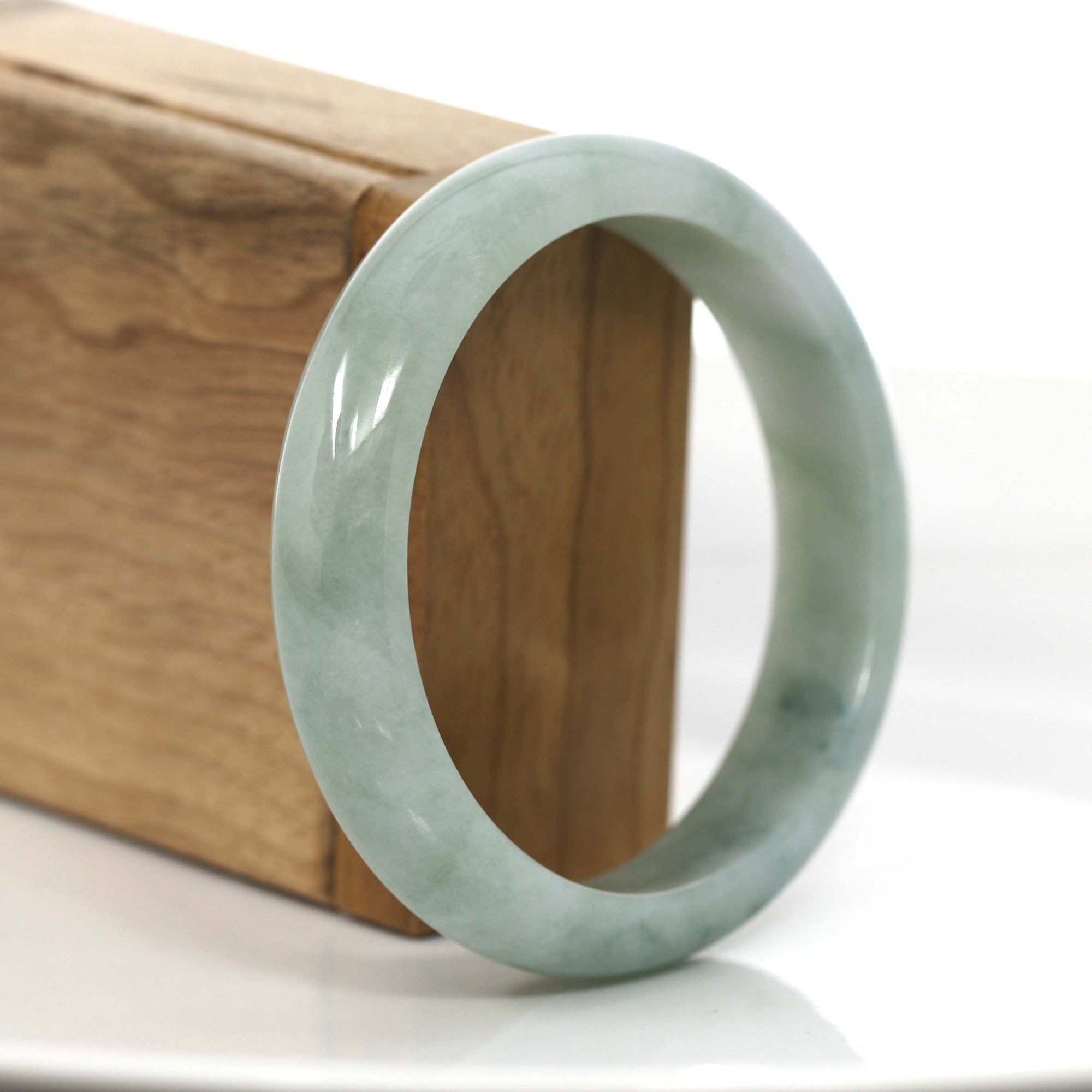 * DETAILS---This bangle is made with fine genuine Burmese Jadeite jade. The jade texture is fine and smooth with blue green color. It just has little clouds. The Classic half-round comfort style bracelet. Jadeite jade is the toughest gemstone on the planet. People believe the real jade is a lucky gemstone. It's a special gift for you and your love.