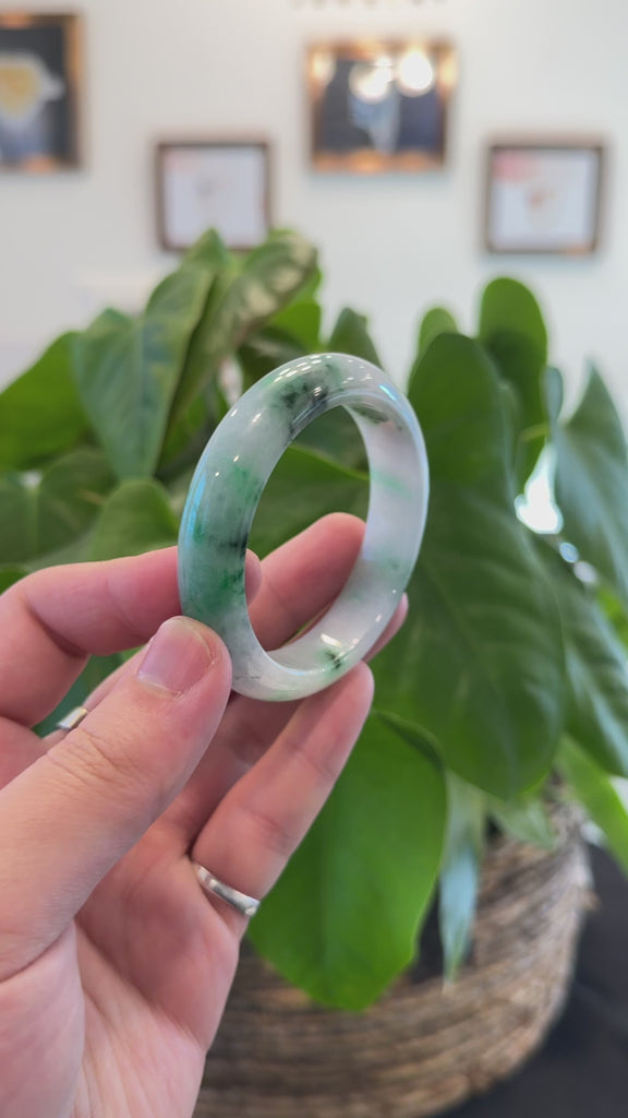 * DETAILS---This exquisite bangle is crafted from premium Burmese jadeite in a Icy green. With its smooth, translucent texture and captivating color, it radiates a timeless elegance and cultural heritage. The half round comfort design enhances the jade’s natural beauty with clarity and simplicity, making this bracelet a cherished addition to any jewelry collection. Known to symbolize protection and strength, jade bangles hold deep meaning, making this piece a thoughtful, one-of-a-kind gift for yourself or someone truly special.