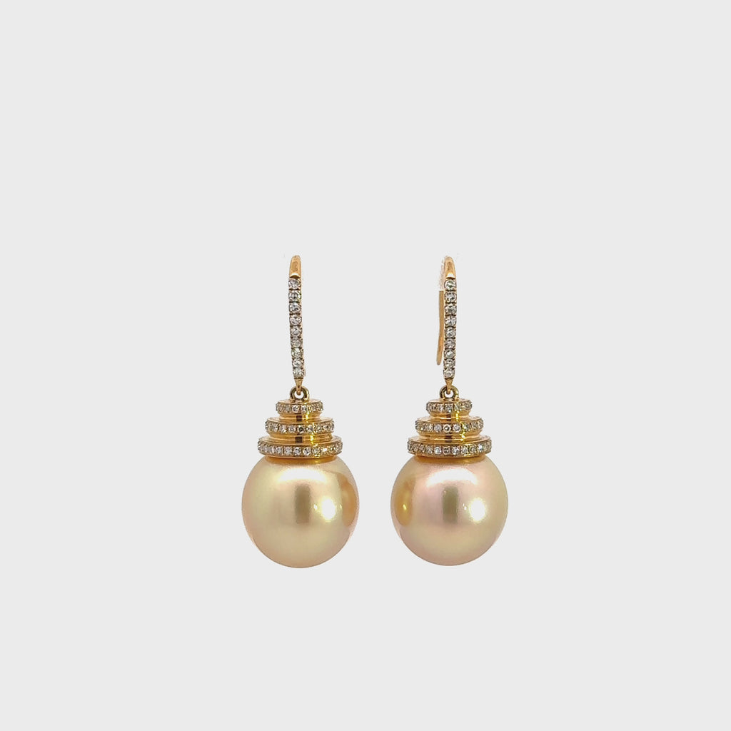 DESIGN CONCEPT--- Introducing our 18k Yellow Gold Tahitian Pearl Dangle Earrings—an epitome of refined luxury and oceanic allure. Crafted with precision and elegance, these earrings seamlessly blend the richness of 18k yellow gold with the exotic beauty of lustrous golden pearls, creating a captivating accessory for those who appreciate timeless sophistication. Embrace the allure of the ocean with these gold sea pearl dangle earrings.