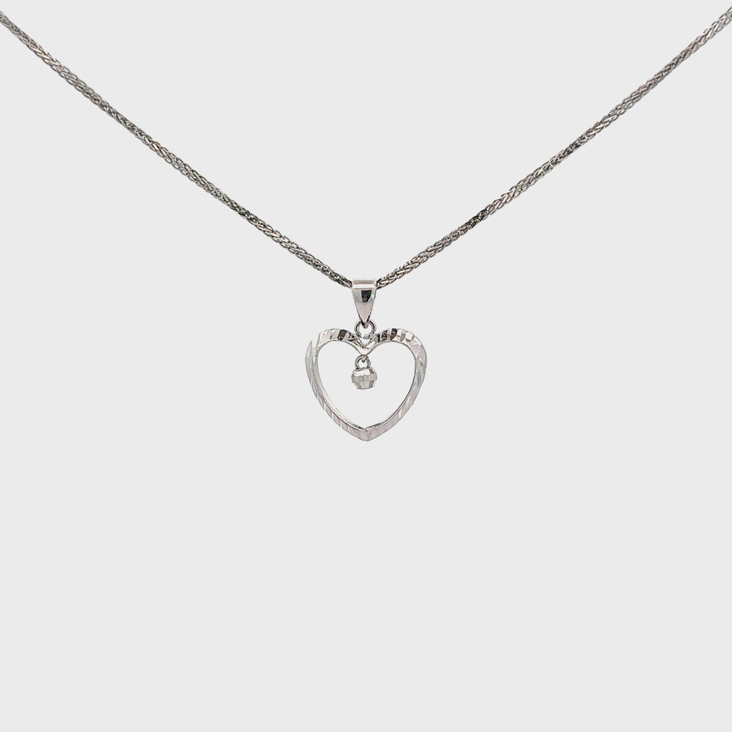 18K White Gold Diamond Cut Heart Pendant Necklace
