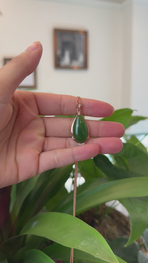 Baikalla Jewelry Jade Pendant Necklace Baikalla™ 18k Rose Gold Tear-Drop Nephrite Jade Necklace Pendant
