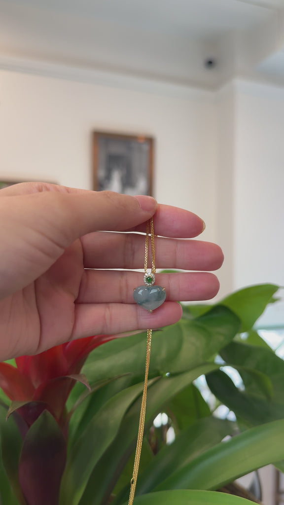 * DESIGN CONCEPT--- Experience the epitome of elegance with the Baikalla 14K White Gold Genuine Burmese Lavender Jadeite Jade Heart Pendant, a true masterpiece in the realm of high jewelry. Made with rare, high-quality genuine blue-green Burmese jadeite jade, the design was inspired by the simplistic yet elegant motif of a heart. Symbolizing love, balance, and joyful connections the pendant is accented with diamonds. Celebrate your unique style with this exquisite pendant that seamlessly blends tradition, luxury, and contemporary design.