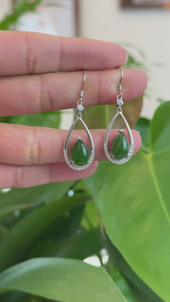 Design conept--- Keep you in my heart with lucky jade dangle earrings. It's simple and teardrop dangle style. This piece is made to last. Natural, untreated, high-quality nephrite jade. The jade color is a deep green. Every detail looks so exquisite. It's a very perfect gift for women, for her.