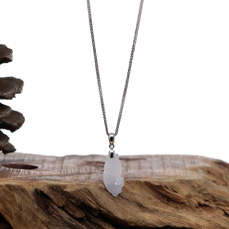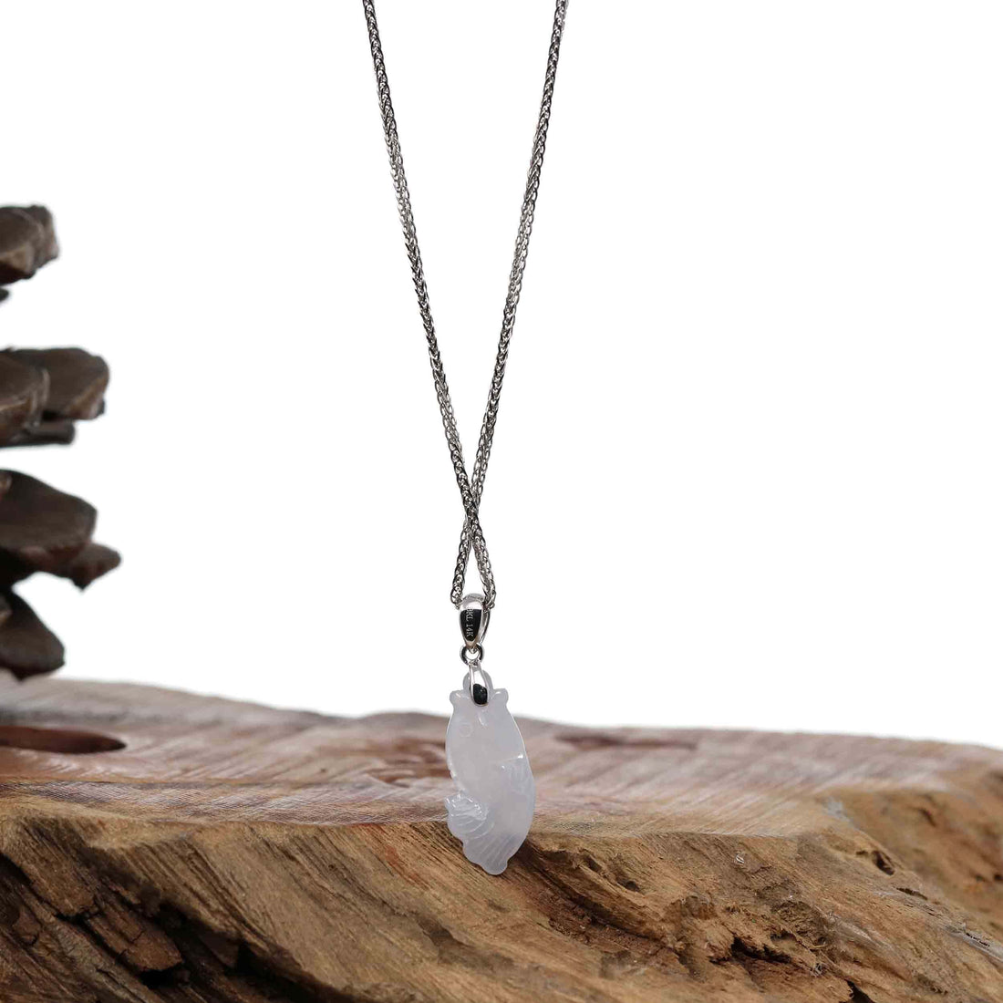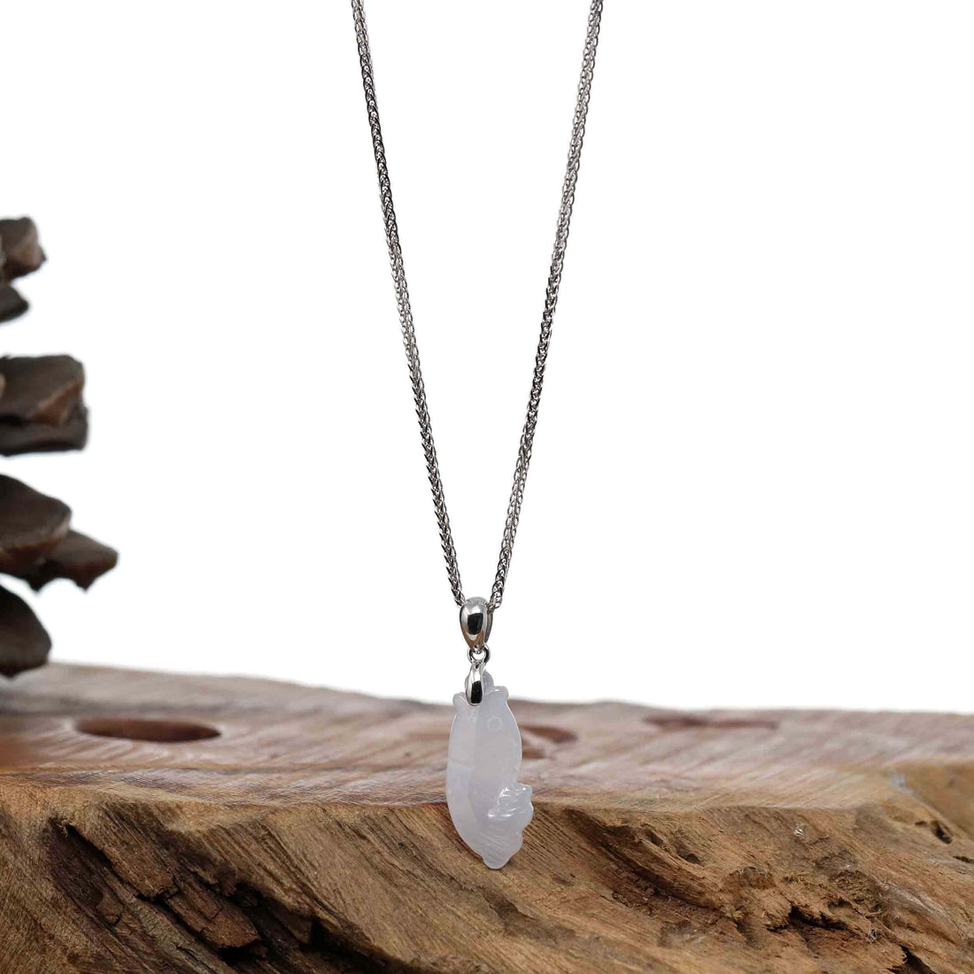 Baikalla "Prosperity Every Year (年年有鱼)" Lucky Fish Carving Pendant Necklace Natural Ice Lavender Jadeite Jade