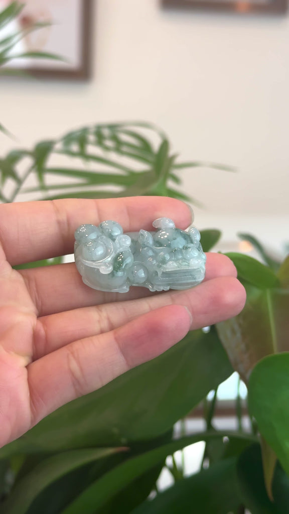Genuine Burmese Ice Blue-Green Jadeite Jade PiXiu Pendant Necklace