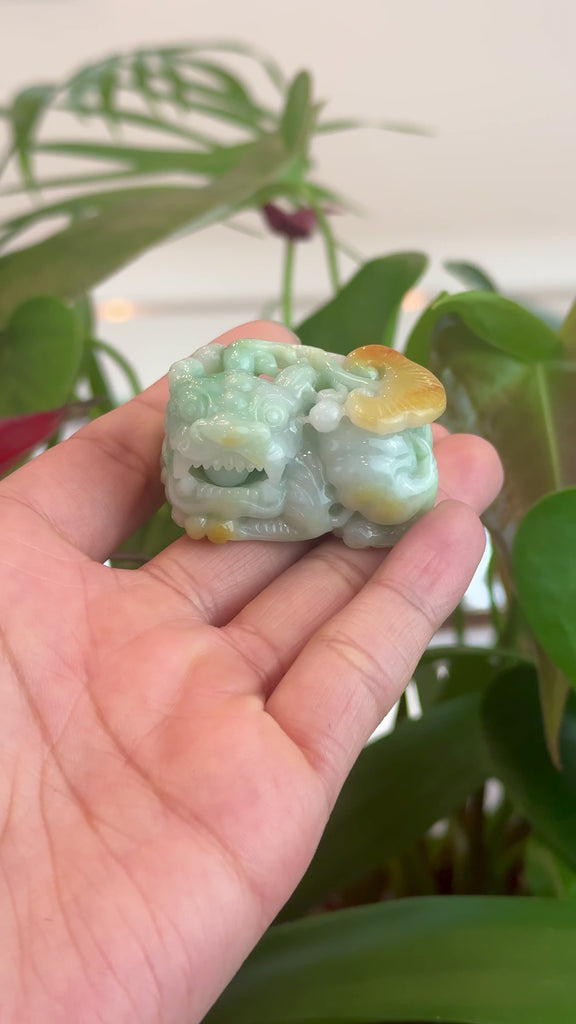 Genuine Burmese Yellow-Green Jadeite Jade PiXiu Pendant Necklace