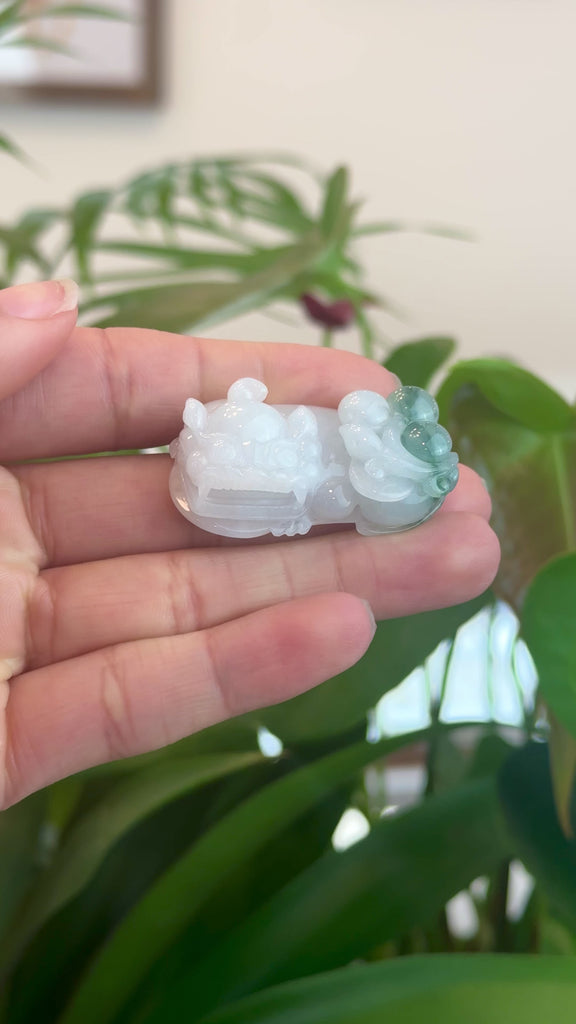 Genuine Burmese White Blue-Green Jadeite Jade PiXiu Pendant Necklace