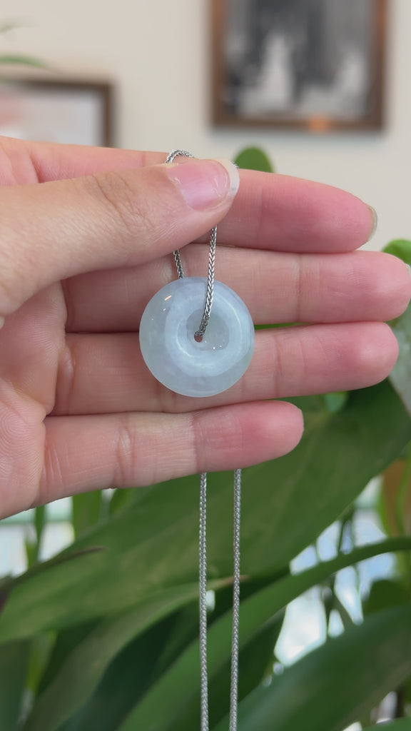 * Design Concept--- The simple shape of a circle represents things such as happiness, wholeness, and prosperity. Or as Sotheby's auction house called a jade bangle. "Circle of Heaven". This necklace is made with very high-quality genuine Burmese lavender jadeite jade. The texture is semi smooth. Gifting one of these is like wishing the best of luck to your family or loved ones. It's a perfect gift.