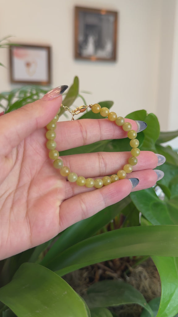 18k Yellow Gold Yellow Jadeite Jade Beads Bracelet (6.5 mm)