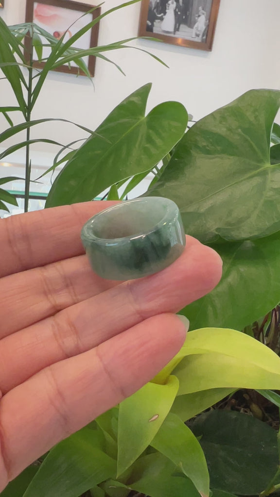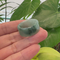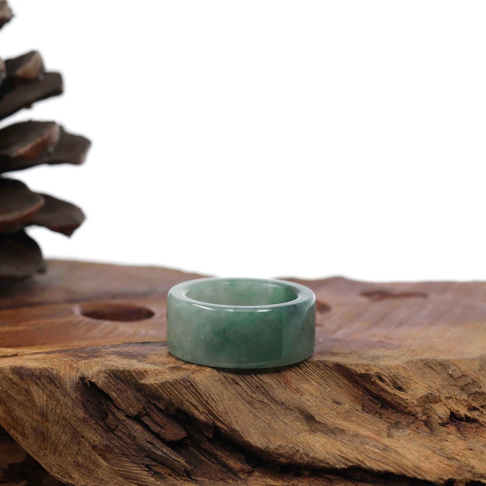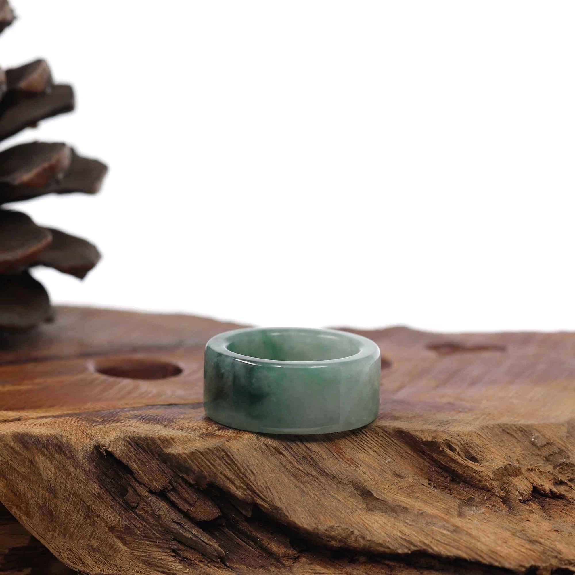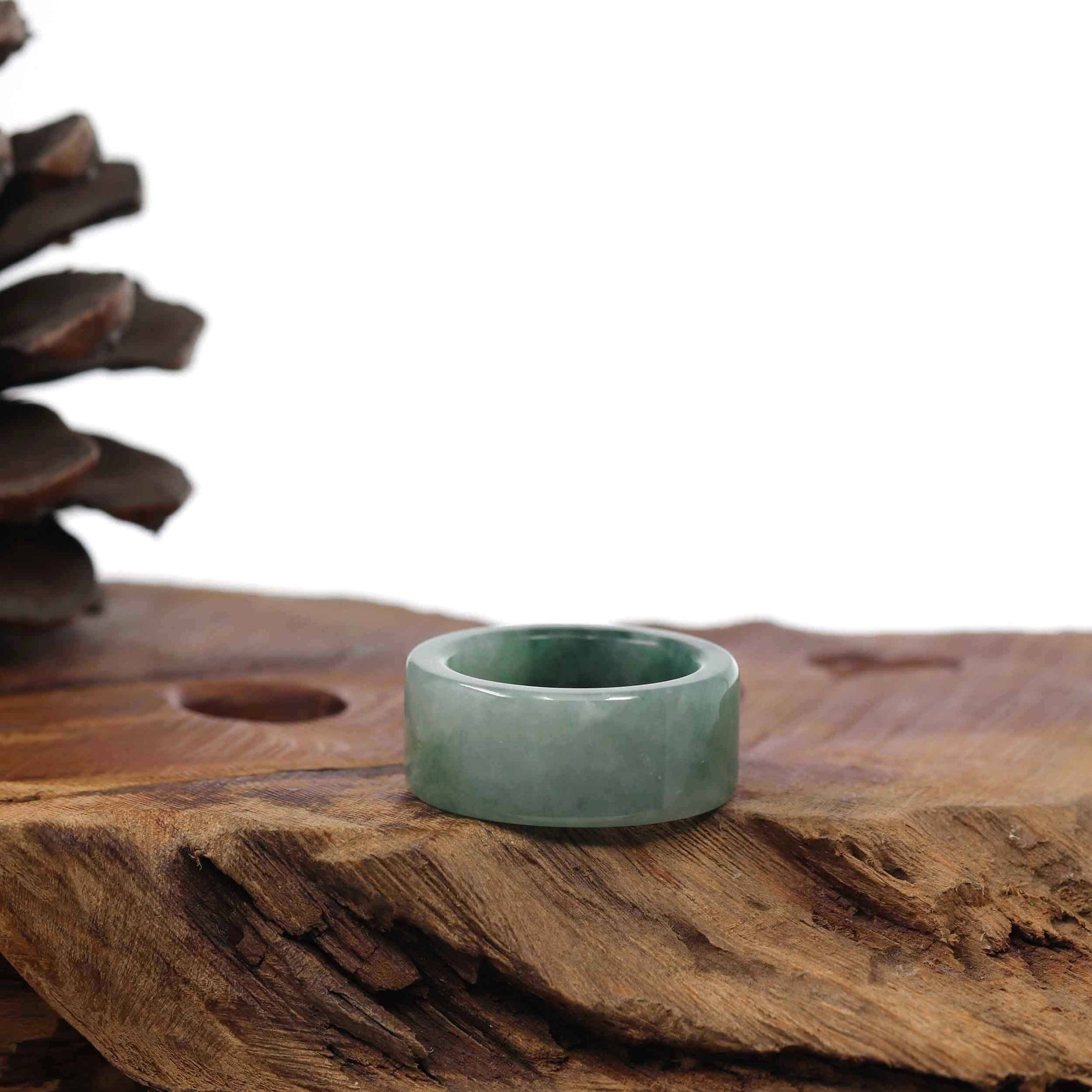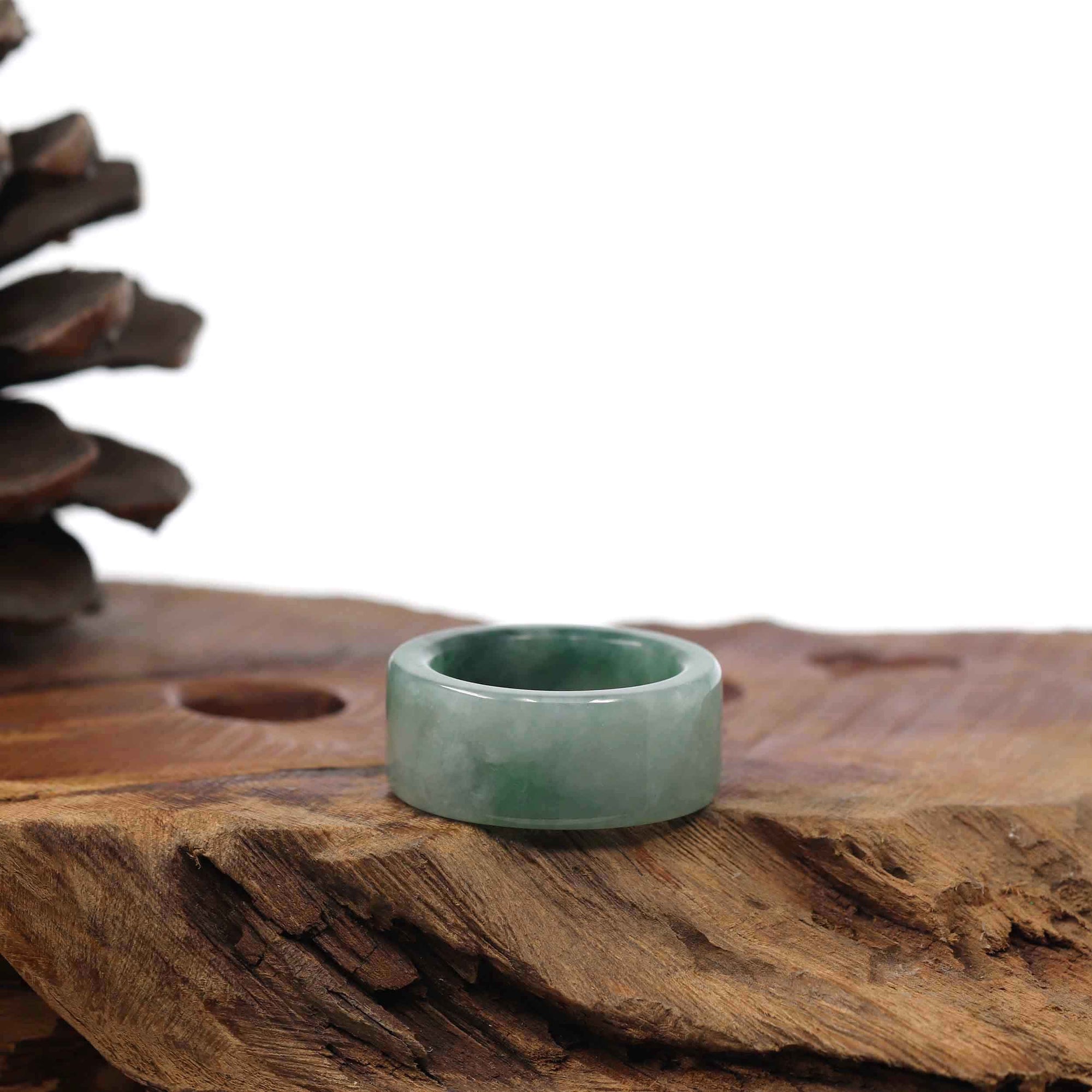 * DETAILS--- Genuine Burmese Jadeite Jade Solid men's band. This ring is made with very high-quality genuine Burmese blue green jadeite jade, The jade texture is smooth, clean, and transparent. The green color and translucent white texture, truly a mesmerizing combination. The Classic half-round style solid jade band. The ring is characterized by beautiful blue green patches. It looks completely beautiful and perfect with high-quality. It's a special gift for men.