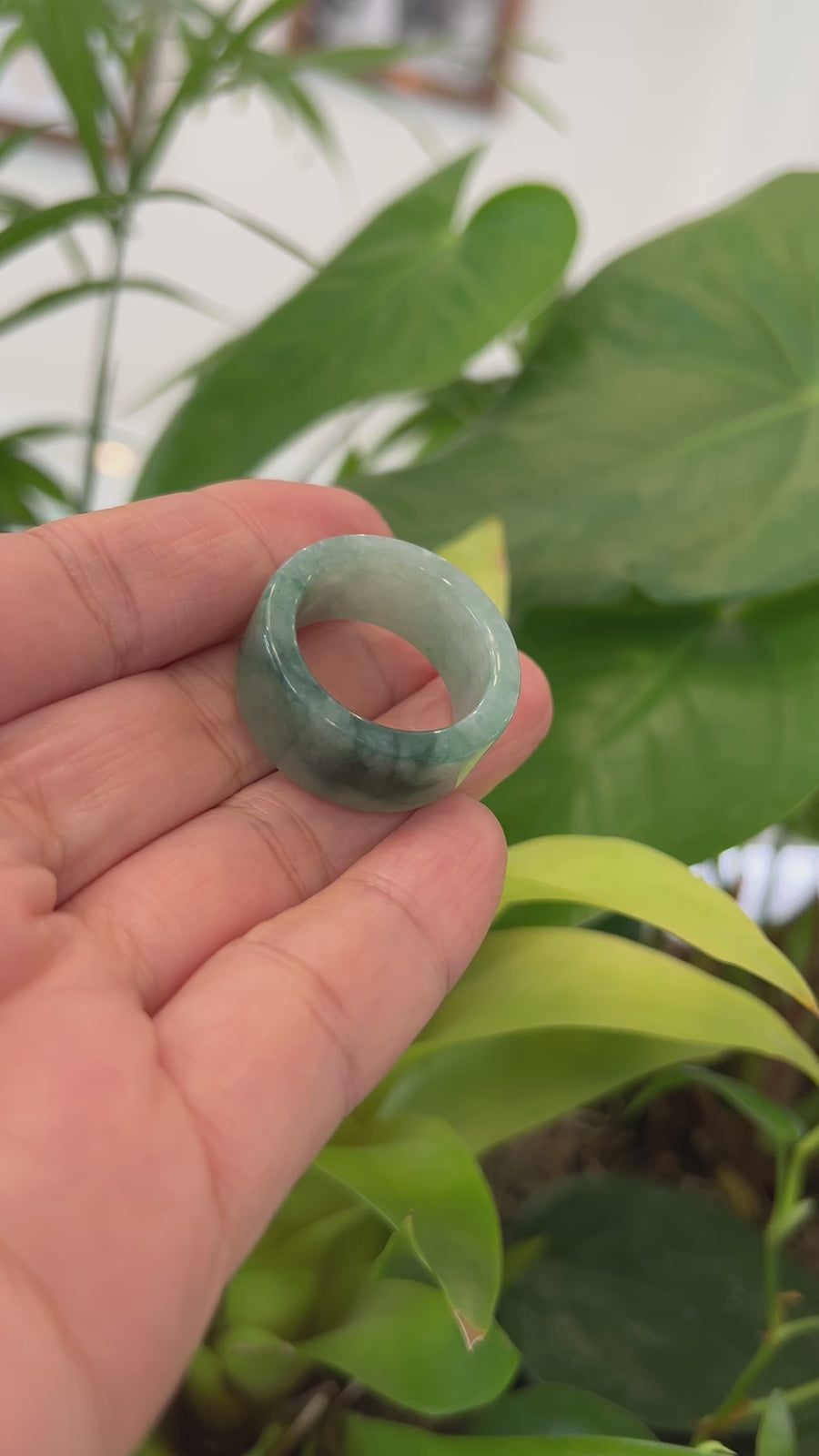 Genuine Burmese Blue-green Jadeite Jade Men's Band Ring