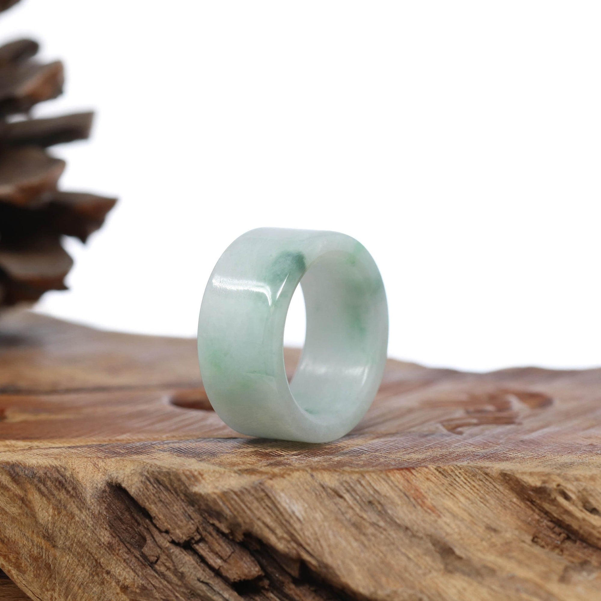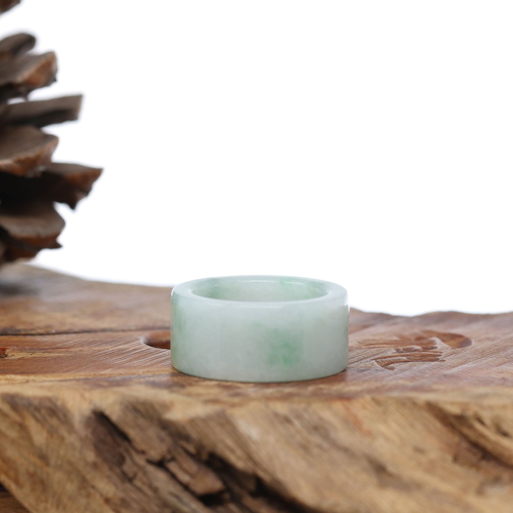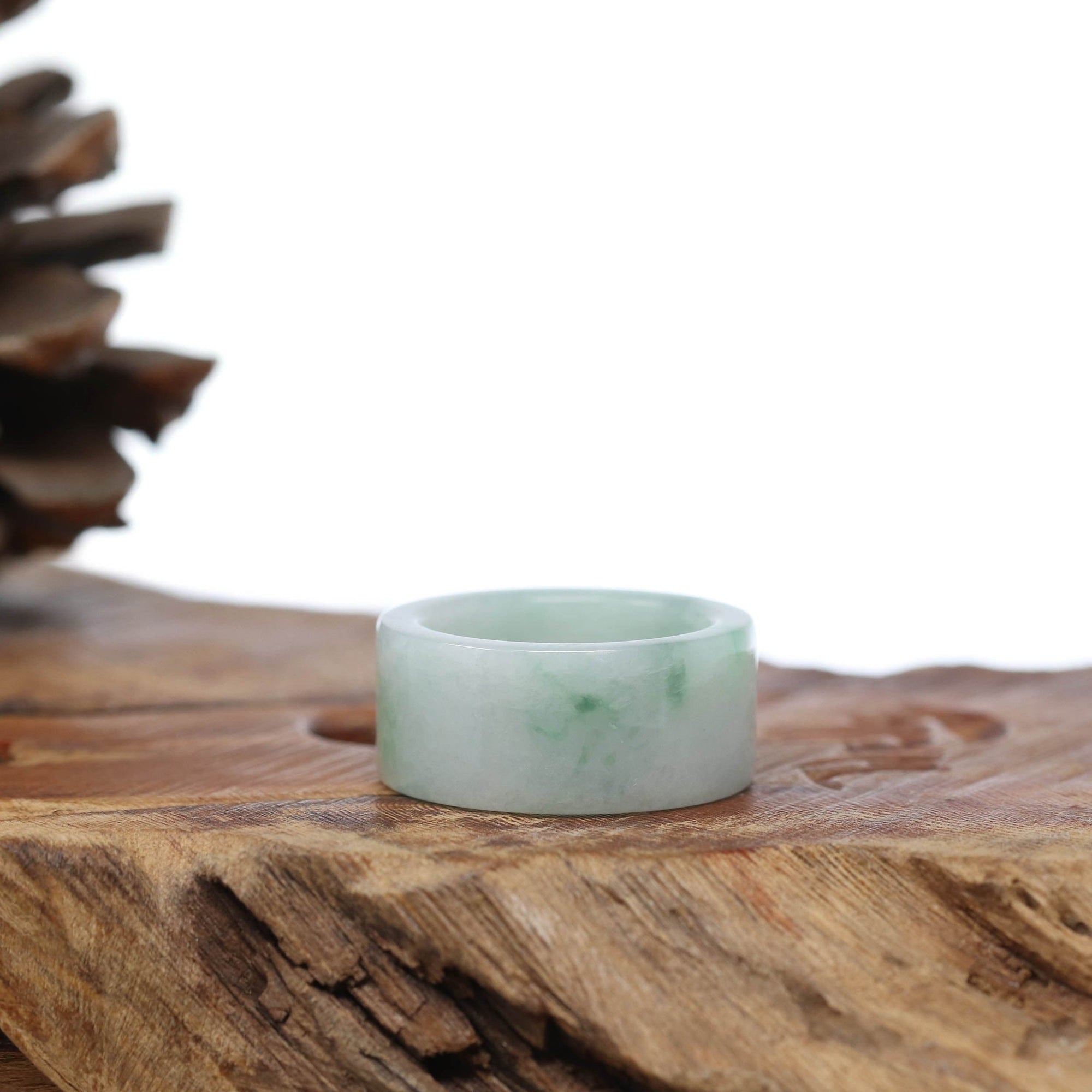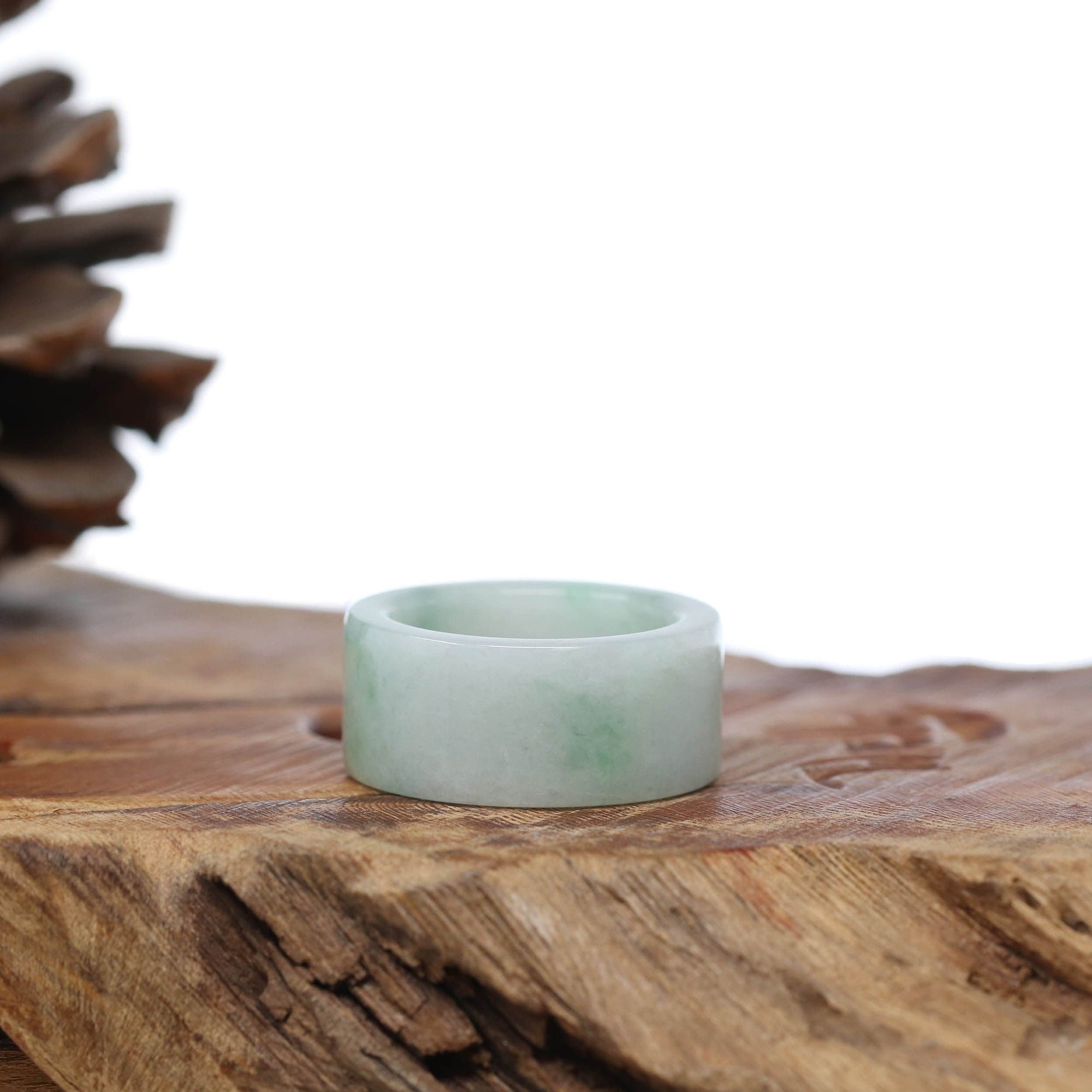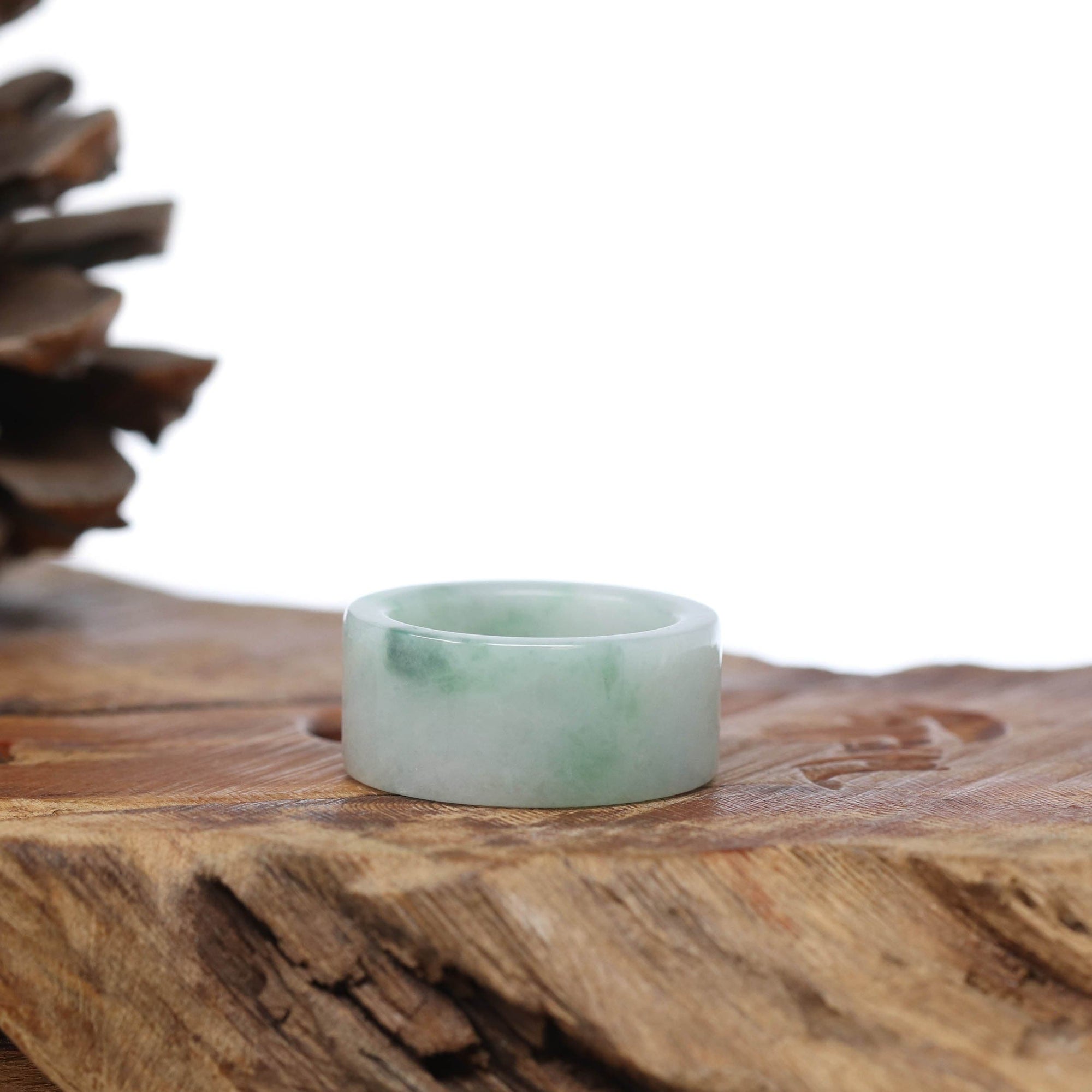 Genuine Burmese Blue-green Jadeite Jade Men's Band Ring