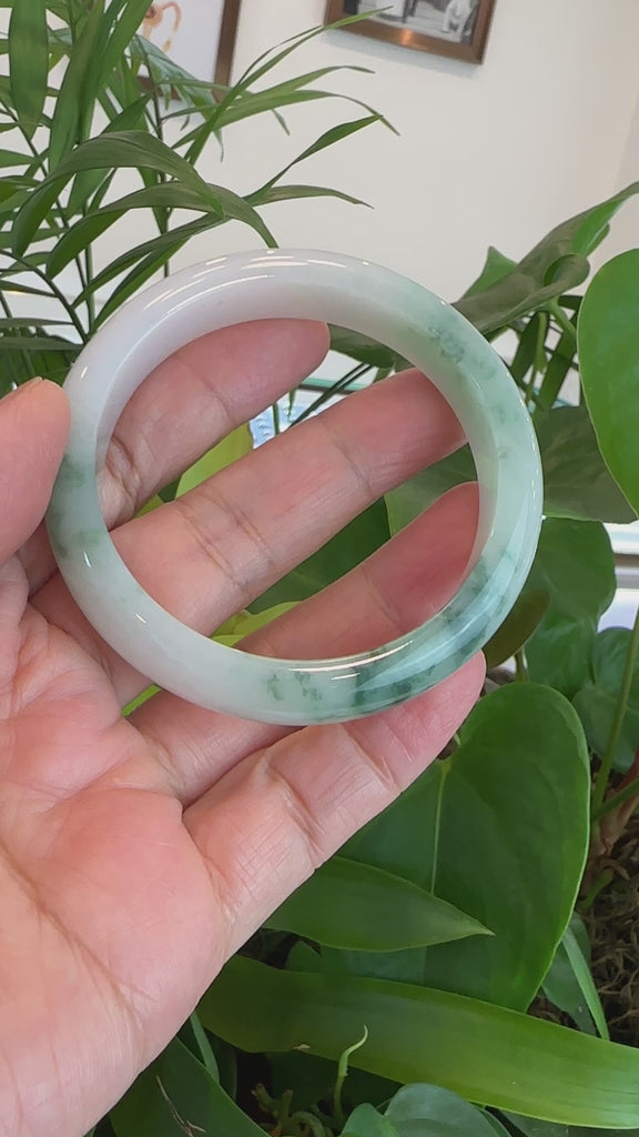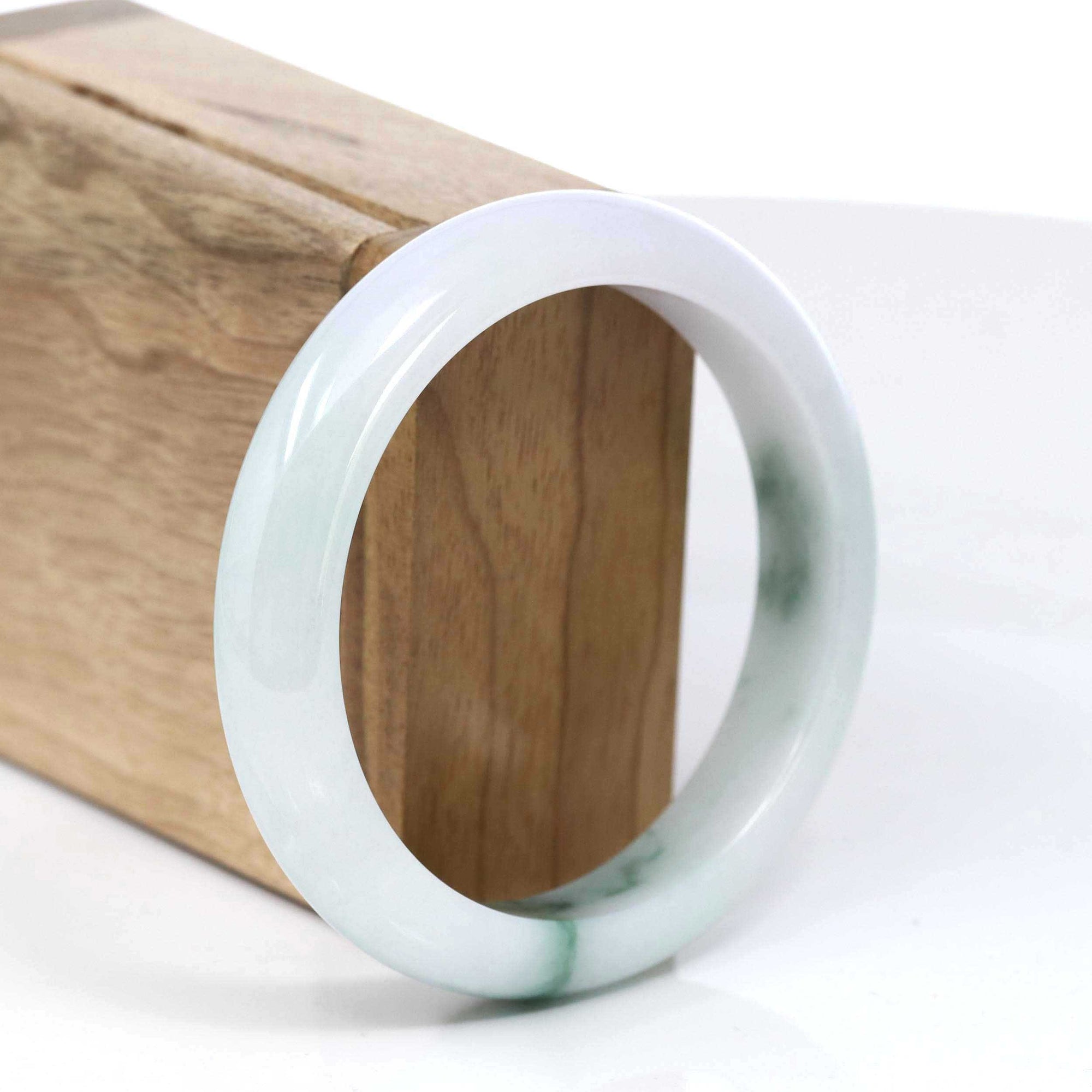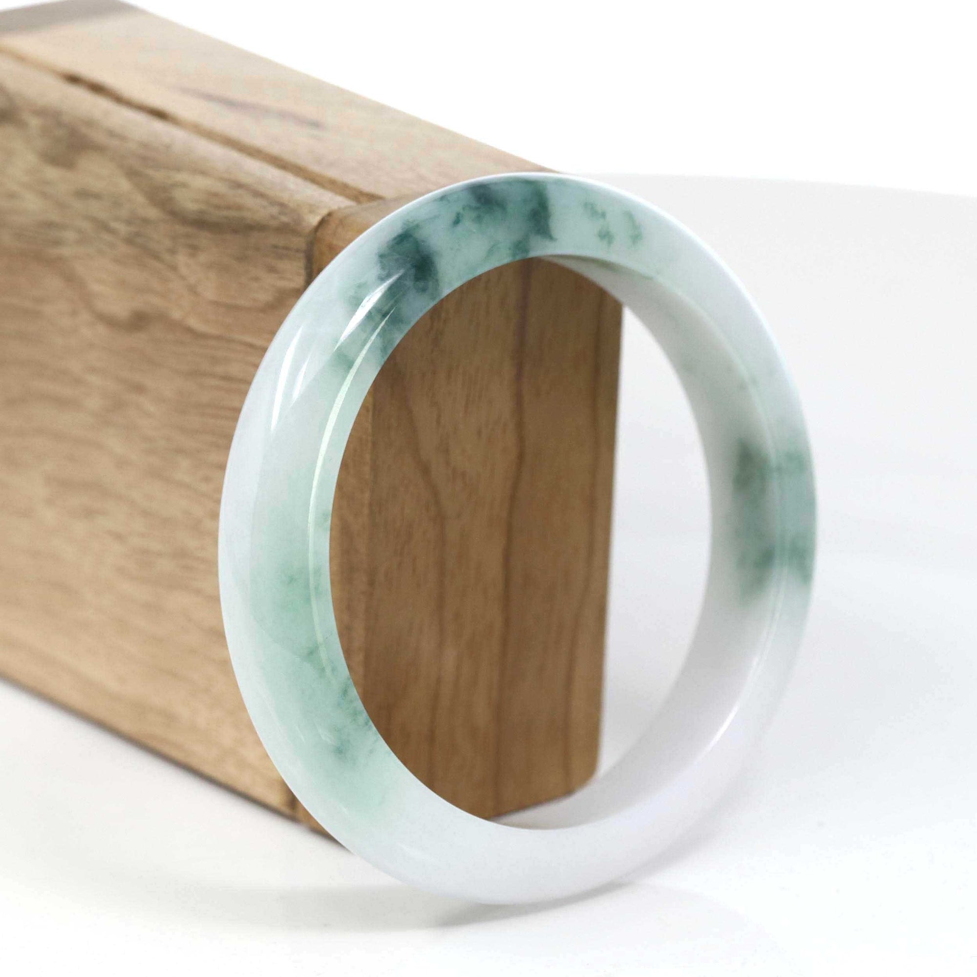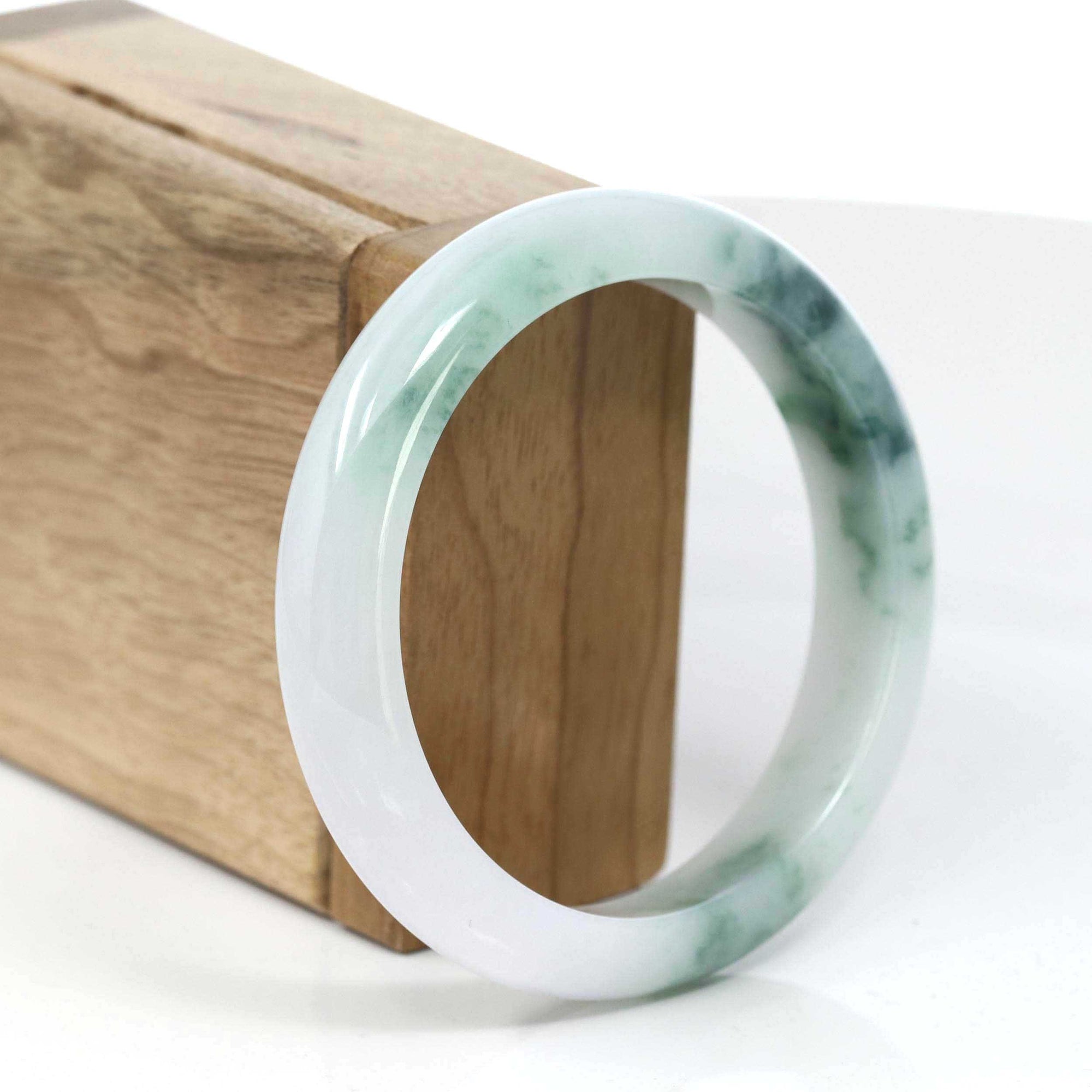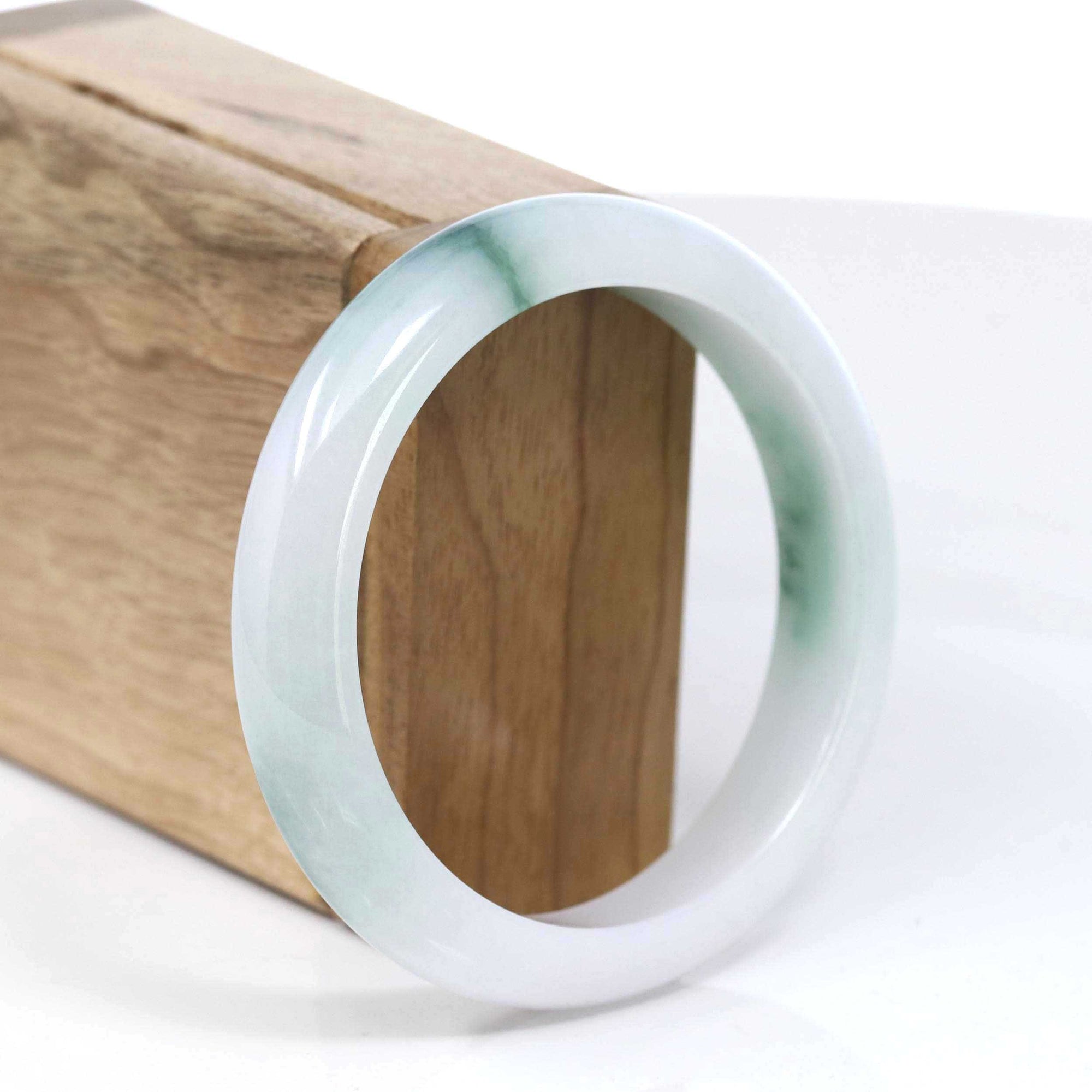 * DETAILS---This bangle is made with very high-quality genuine Burmese blue-green and lavender jadeite jade, The jade texture is smooth, clean, and translucent. The blue-green color and translucent lavender texture, truly a mesmerizing combination. The Classic half-round wider style bracelet. it looks completely beautiful and perfect with high-quality. It's a unique gift for yourself or your love.