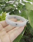 * DETAILS--- Genuine Burmese Jadeite Jade Bangle Bracelet. This bangle is made with genuine Burmese Jadeite jade from an old mine; The jade texture is ok, with some blue-green parts. It just has some natural clouds and black spots. It's a very unique bangle, one of a kind. It's a large size. You know the genuine jade bangle is always meaningful for someone. The Classic half-round style bracelet. It's a special gift for yourself or your love.